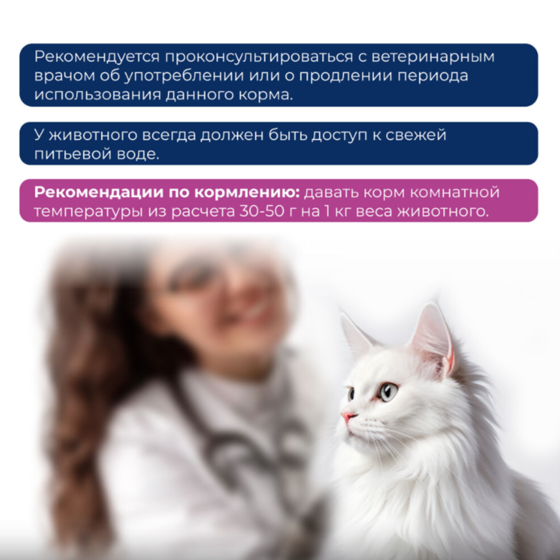 Рекомендуется проконсультироваться с ветеринарным врачом об употреблении или о продлении периода использования данного корма.