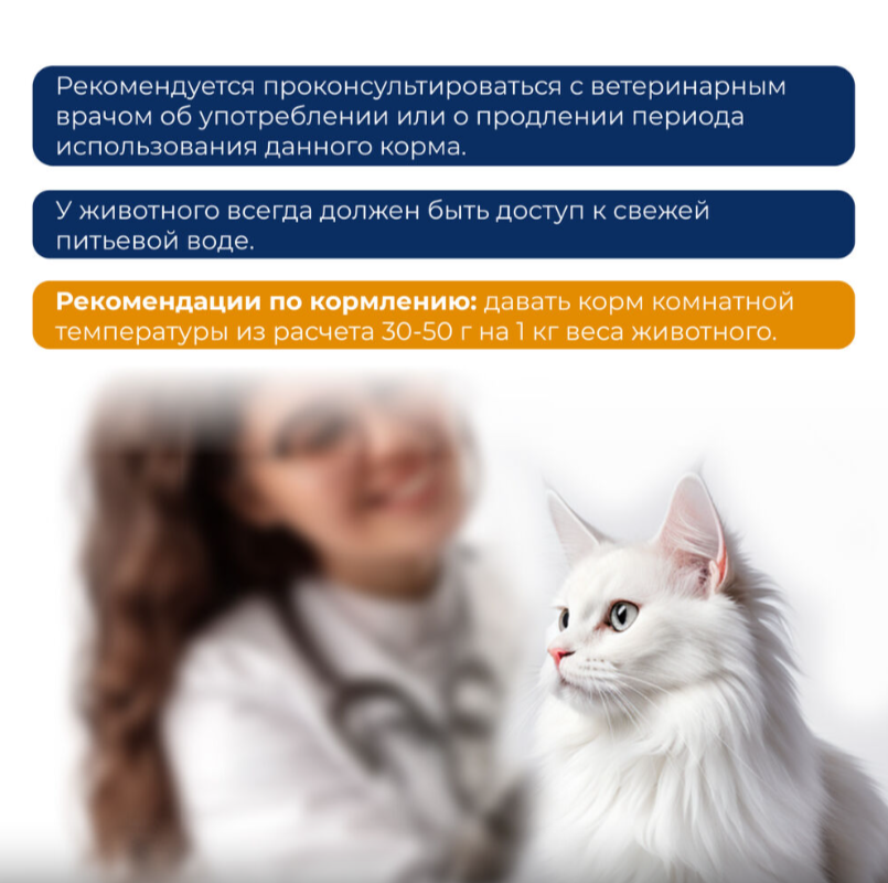 Рекомендуется проконсультироваться с ветеринарным врачом об употреблении или о продлении периода использования данного корма.