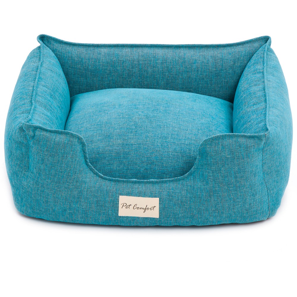 Питомец может лечь головой на мягкий как подушка, бортик лежанки.