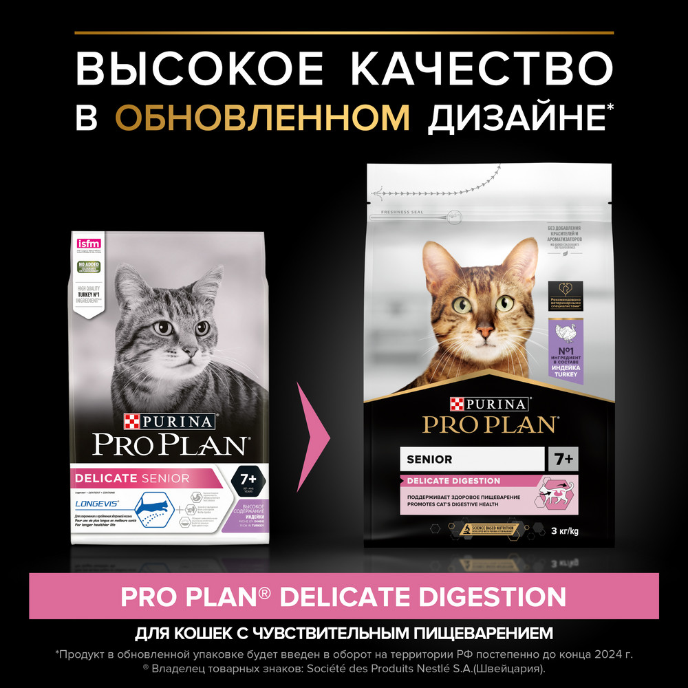 Создавая сухой корм для кошек старше семи лет, эксперты PRO PLAN позаботились об особых потребностях пожилых питомцев с чувствительным пищеварением, добавив специальный комплекс микронутриентов для продления жизни