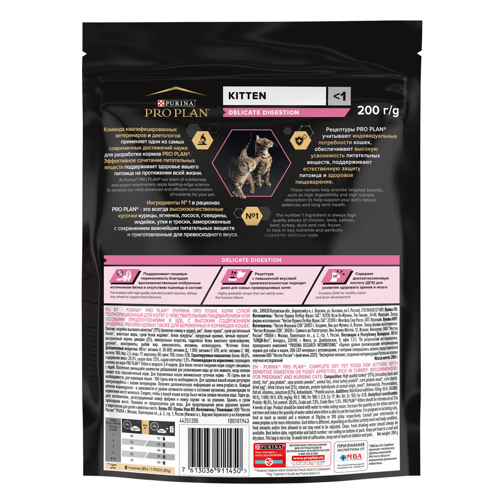 Команда квалифицированных ветеринарных специалистов и диетологов разработала сухой корм с индейкой для котят PRO PLAN® DELICATE DIGESTION.