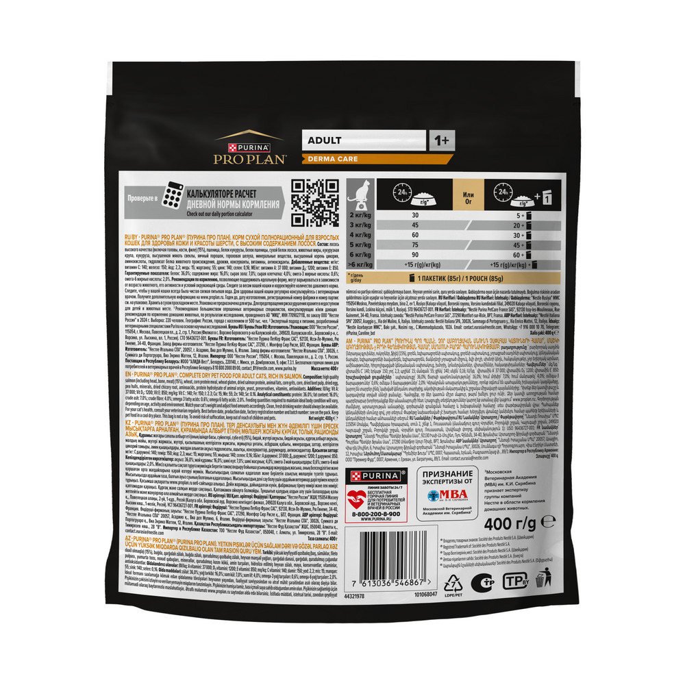 Корм сухой для кошек PRO PLAN® DERMA CARE (Забота о здоровье кожи и шерсти) — это полюбившийся PRO PLAN® Elegant OptiDerma с новым названием, но прежним составом и качеством.