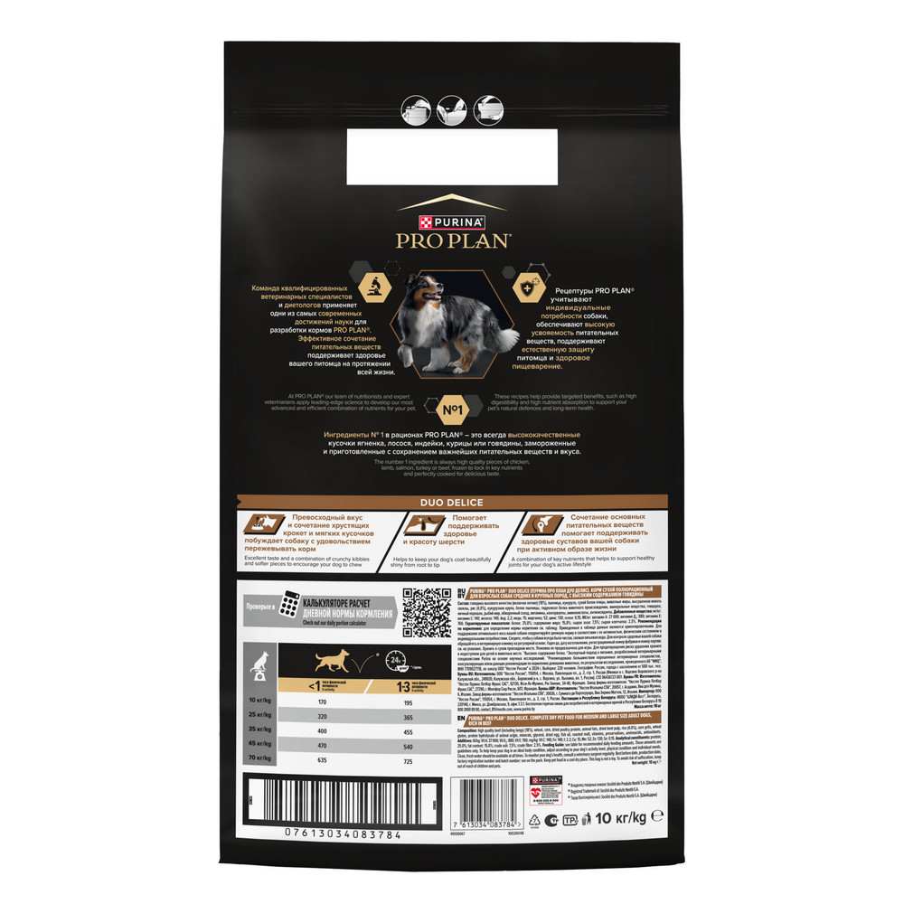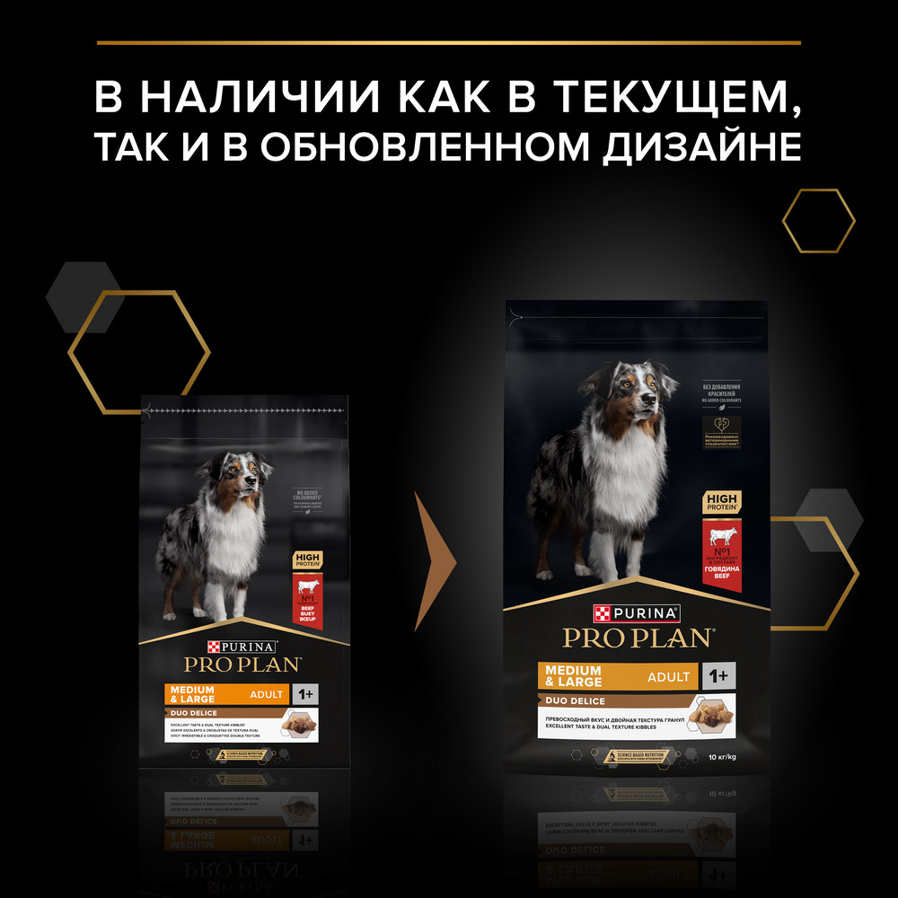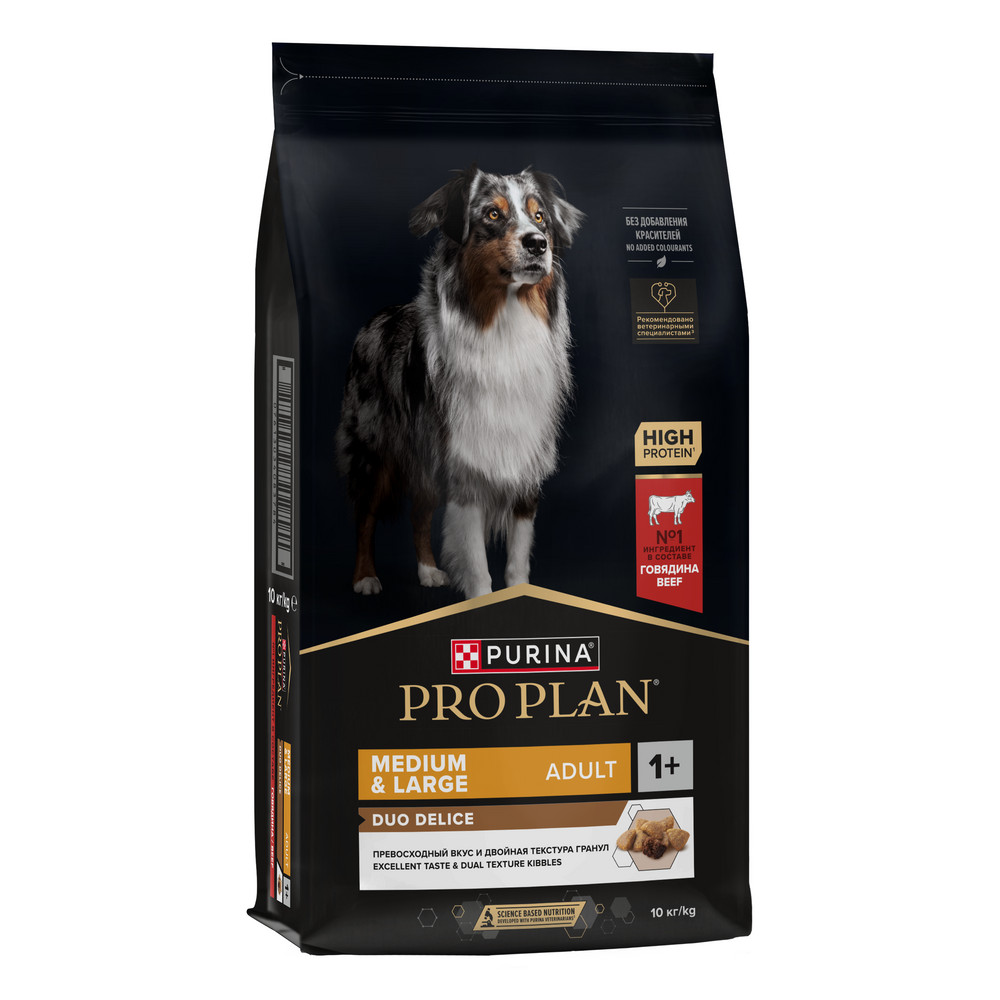 Изучая потребности собак на протяжении многих лет, команда квалифицированных ветеринарных специалистов и диетологов PURINA разработала сухой корм PRO PLAN® DUO DELICE (Дуо Делис с двойной текстурой гранул) — ежедневный рацион с высоким содержанием говядины для взрослых собак средних и крупных пород.