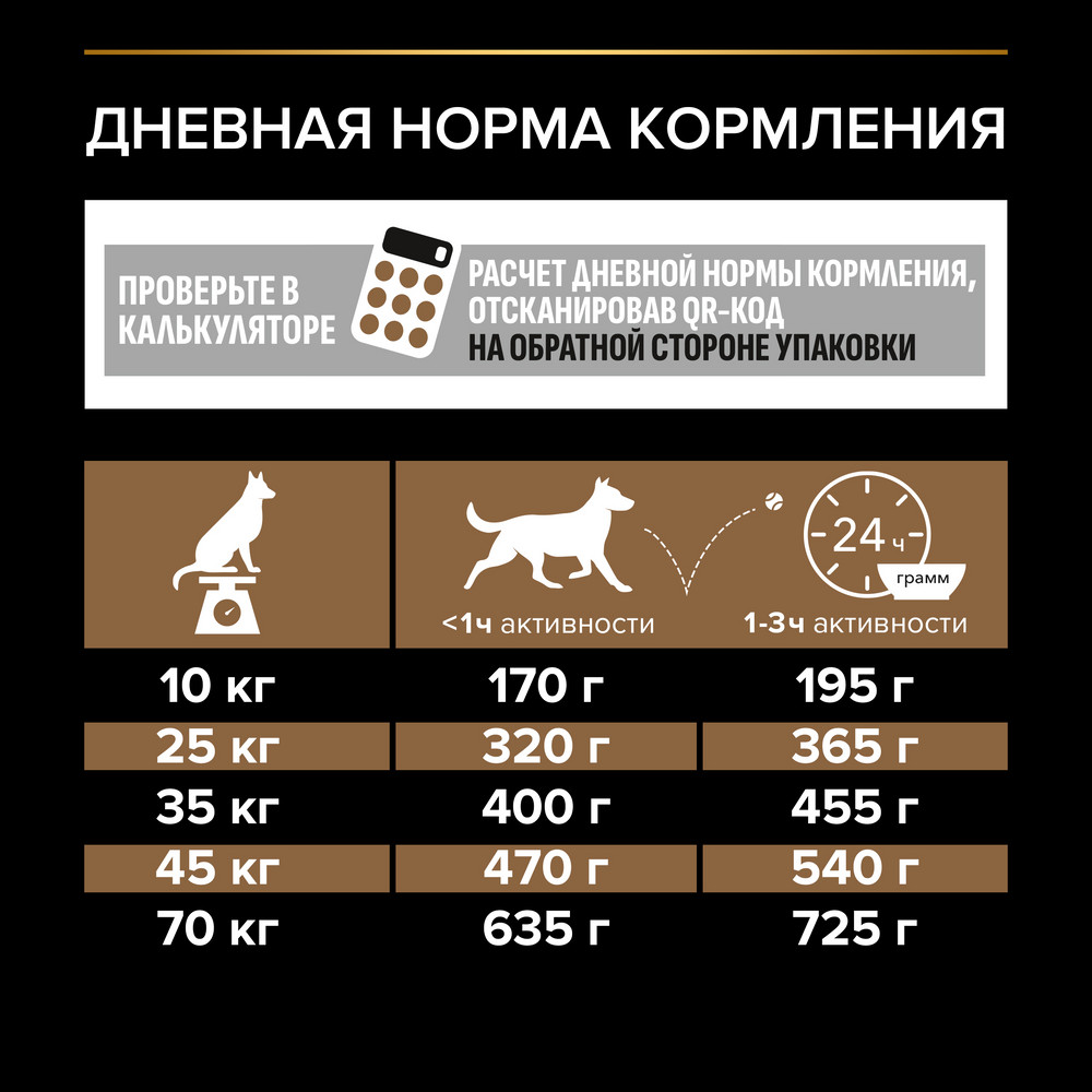 Индивидуальную норму кормления собаки с учетом ее возраста, размера и индивидуальных потребностей вы можете рассчитать в специальном калькуляторе.