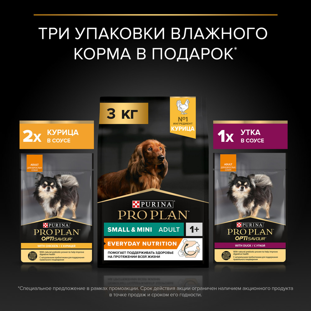 2.Влажный корм PRO PLAN® для взрослых собак мелких и карликовых пород, с курицей в соусе 85 г: Мясо и продукты его переработки (из которых курица 9%), экстракты растительного белка, рыба и продукты ее переработки, продукты переработки растительного сырья, минеральные вещества, загустители, сахара, витамины, аминокислоты.