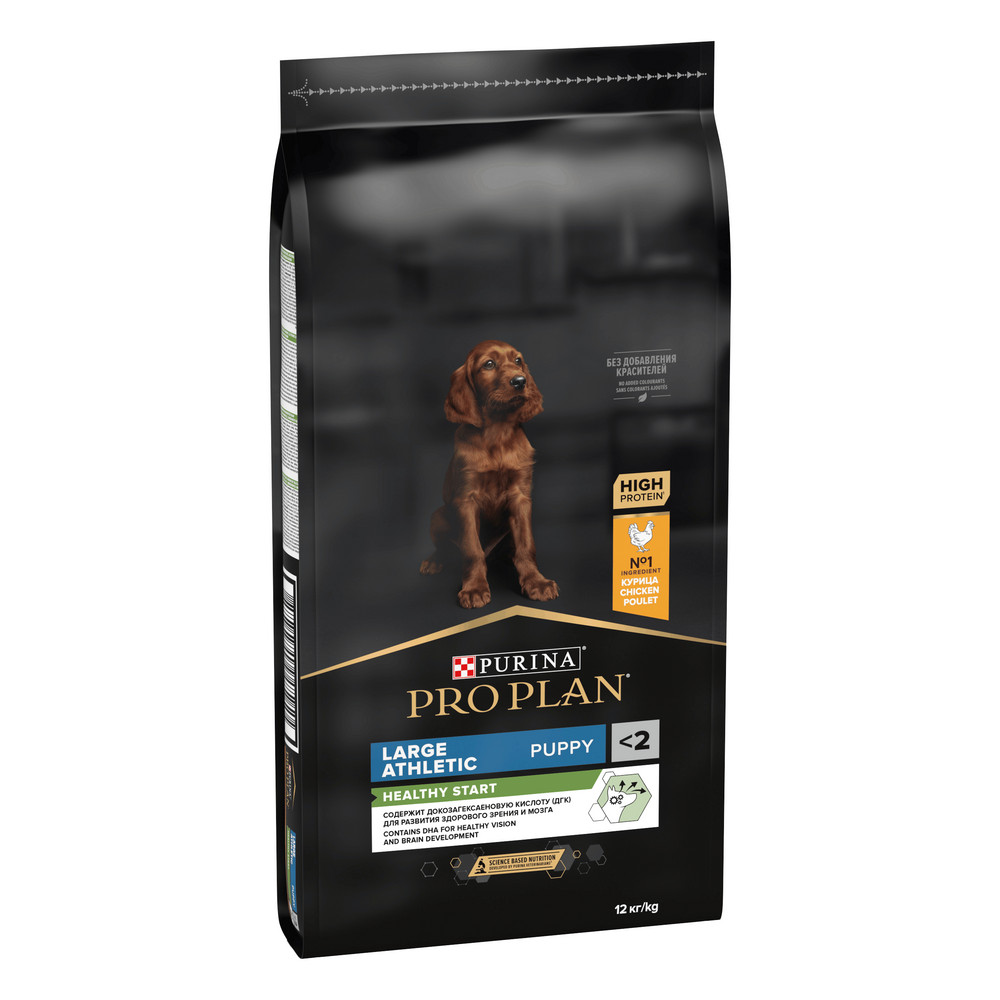 Изучая потребности щенков на протяжении многих лет, команда квалифицированных ветеринарных специалистов и диетологов PURINA разработала сухой корм PRO PLAN® Healthy start (здоровый старт) для щенков с 6 недель* — ежедневный рацион с высоким содержанием курицы для щенков крупных пород атлетического телосложения.