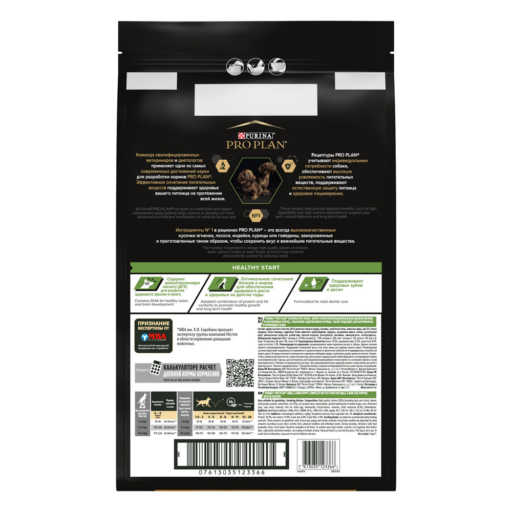 Изучая потребности щенков на протяжении многих лет, команда квалифицированных ветеринарных специалистов и диетологов PURINA разработала сухой корм PRO PLAN® Healthy start (здоровый старт) для щенков с 6 недель* — ежедневный рацион с высоким содержанием курицы для щенков мелких и карликовых пород.