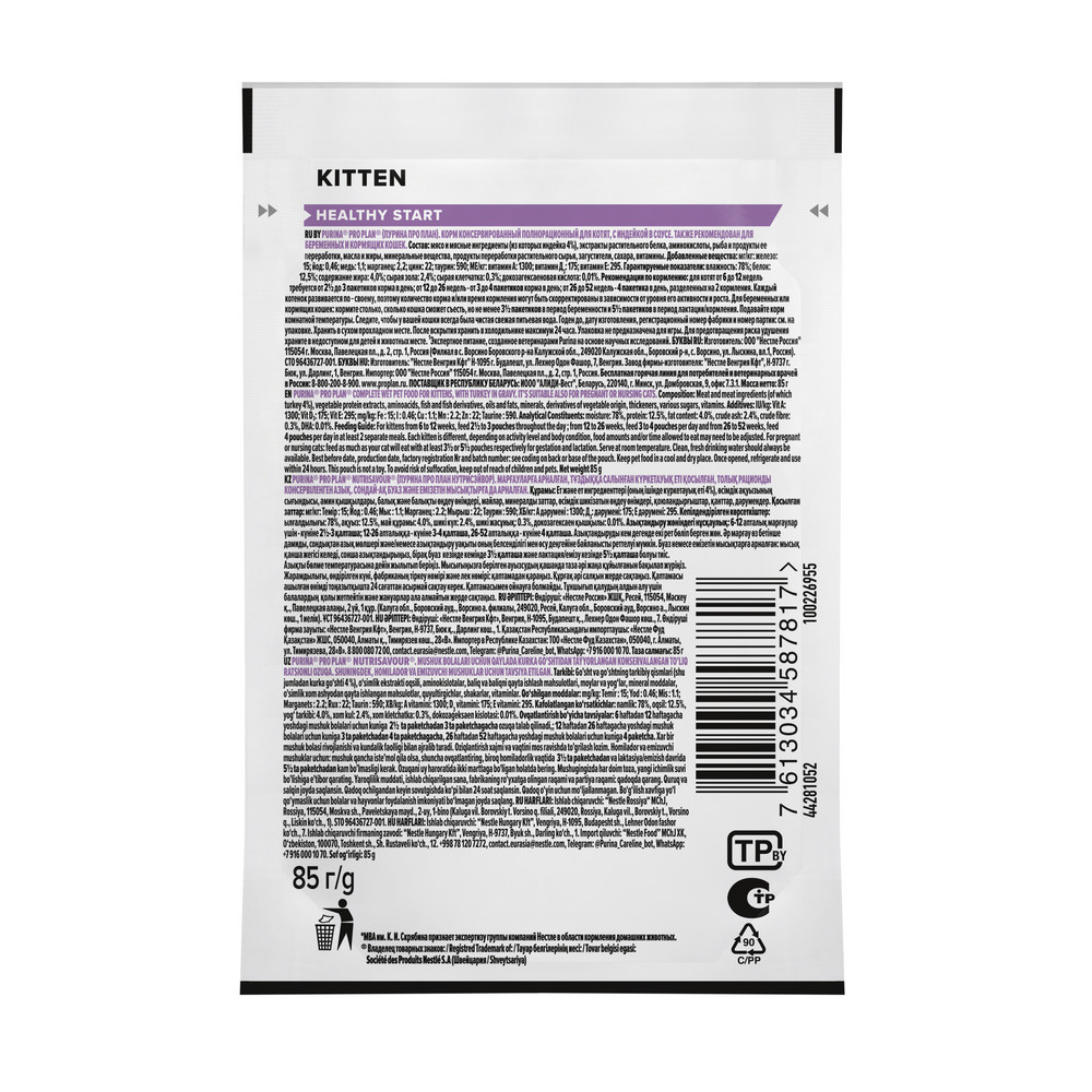 Влажный корм для котят PURINA® PRO PLAN® HEALTHY START (Здоровый старт для котят) — это полюбившийся PRO PLAN® NUTRISAVOUR® KITTEN с новым названием, но с прежним составом и качеством.