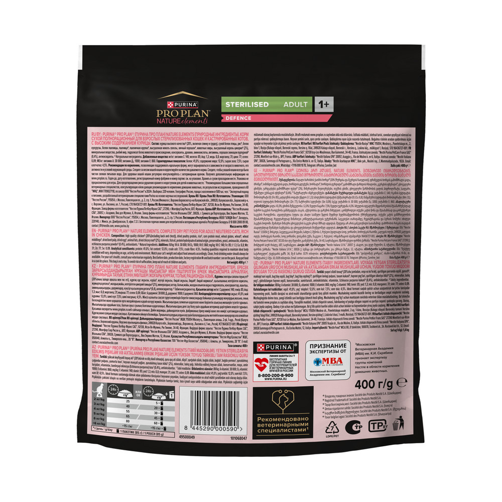 Команда квалифицированных ветеринарных специалистов разработала рацион PRO PLAN® NATURE ELEMENTS* STERILISED** для взрослых стерилизованных кошек.