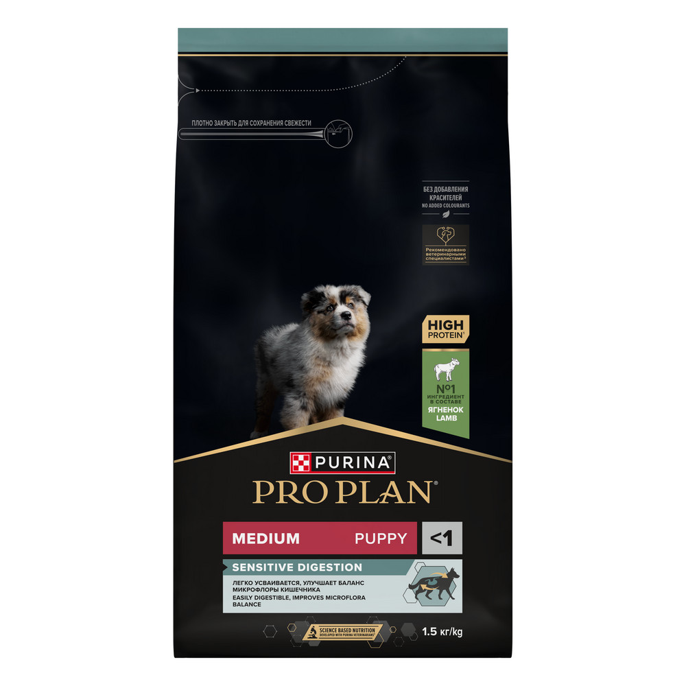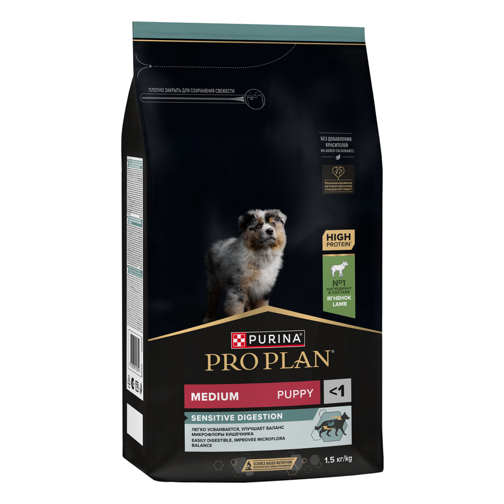 Изучая потребности щенков на протяжении многих лет, команда квалифицированных ветеринарных специалистов и диетологов PURINA разработала сухой корм PRO PLAN® Sensitive digestion (для чувствительного пищеварения) — ежедневный рацион с высоким содержанием ягненка для щенков средних пород.