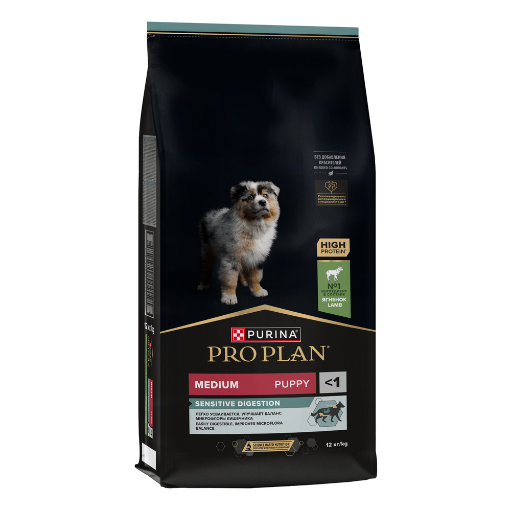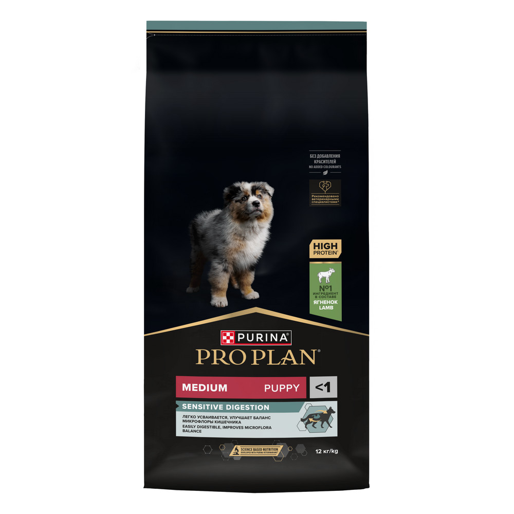 Изучая потребности щенков на протяжении многих лет, команда квалифицированных ветеринарных специалистов и диетологов PURINA разработала сухой корм PRO PLAN® Sensitive digestion (для чувствительного пищеварения) — ежедневный рацион с высоким содержанием ягненка для щенков средних пород.