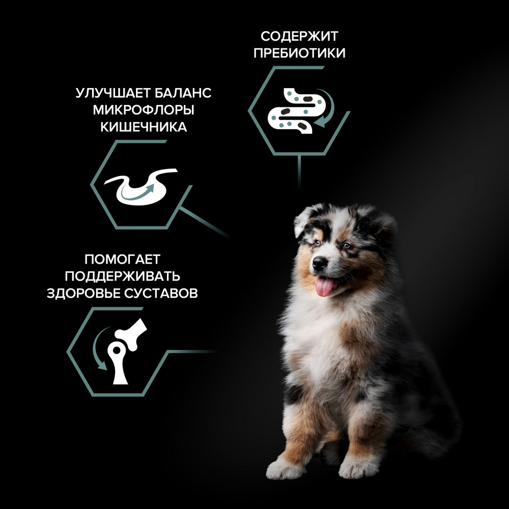 • Помогает поддерживать здоровье суставов щенка при активном образе жизни.