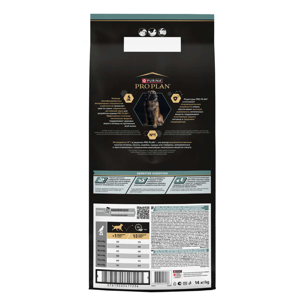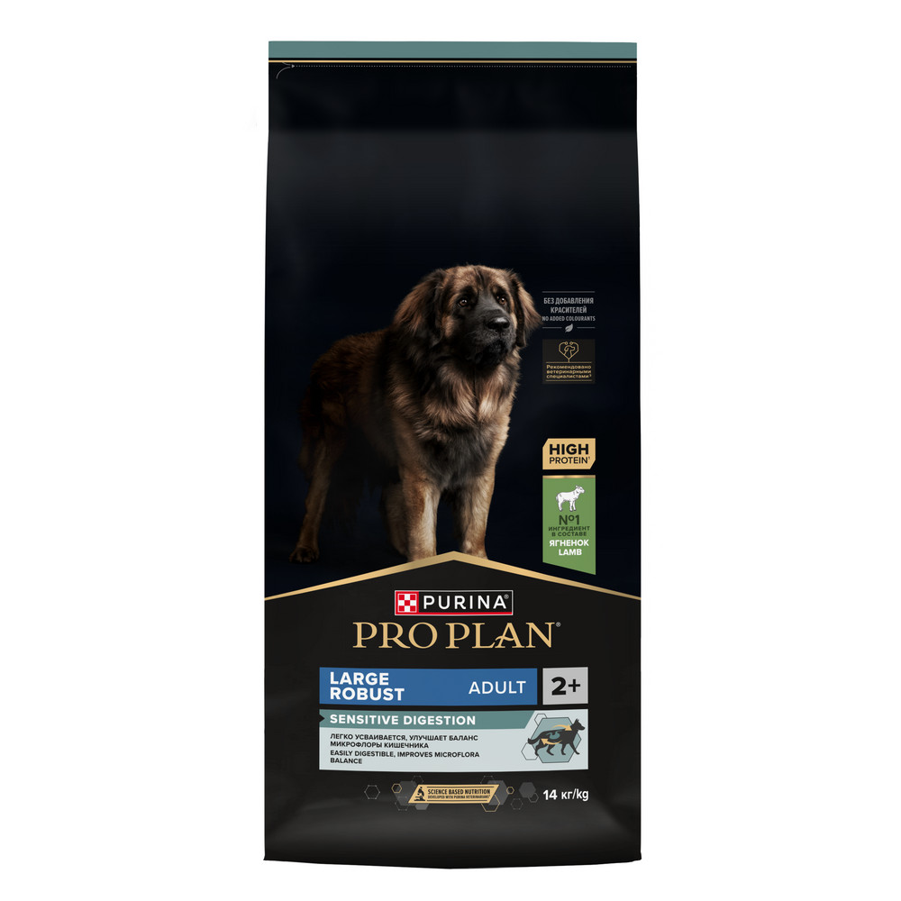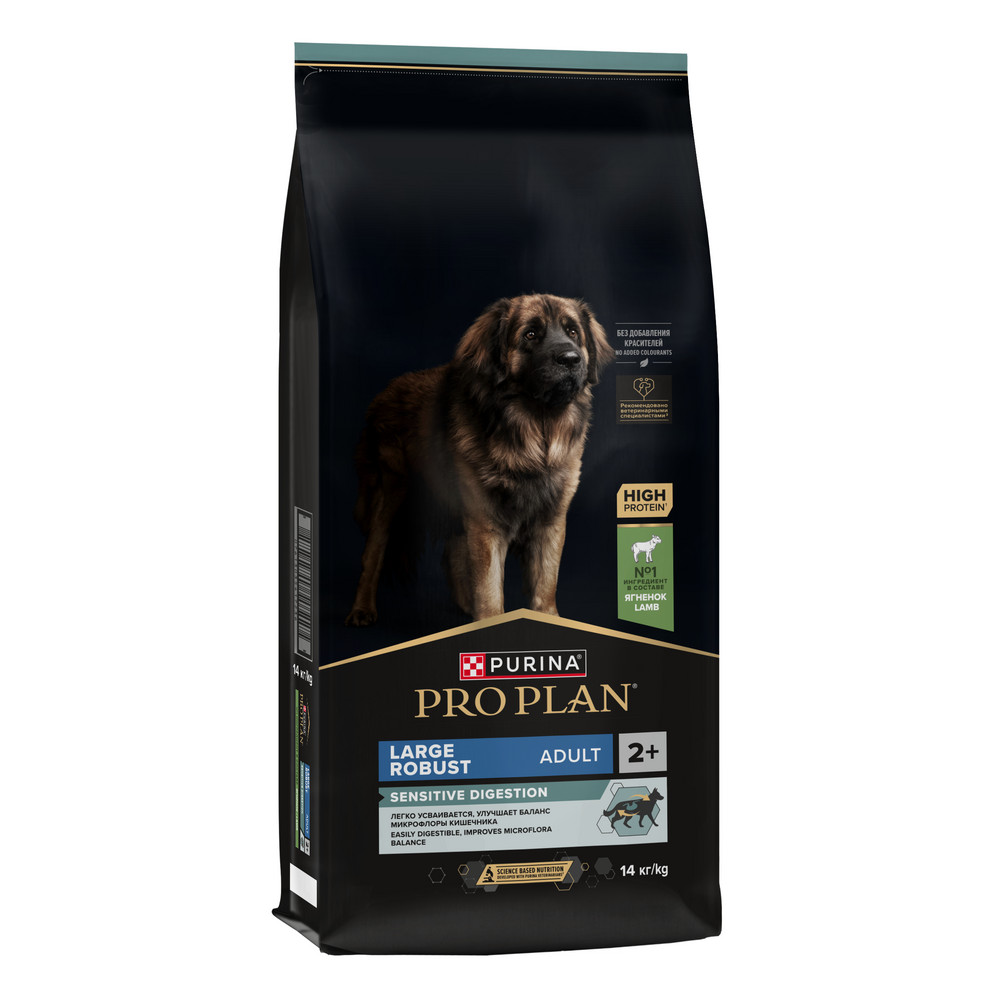 Изучая потребности собак на протяжении многих лет, команда квалифицированных ветеринарных специалистов и диетологов PURINA разработала сухой корм PRO PLAN® Sensitive digestion (для чувствительного пищеварения) — ежедневный рацион с высоким содержанием ягненка для взрослых собак крупных пород с мощным телосложением.