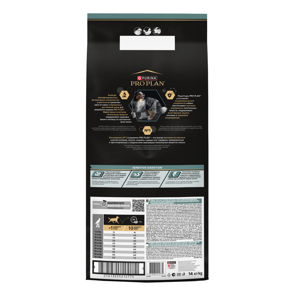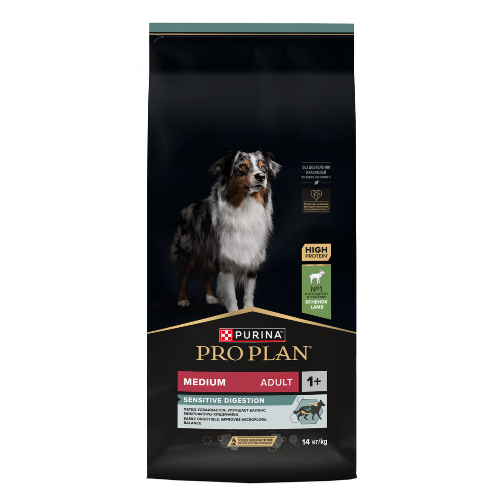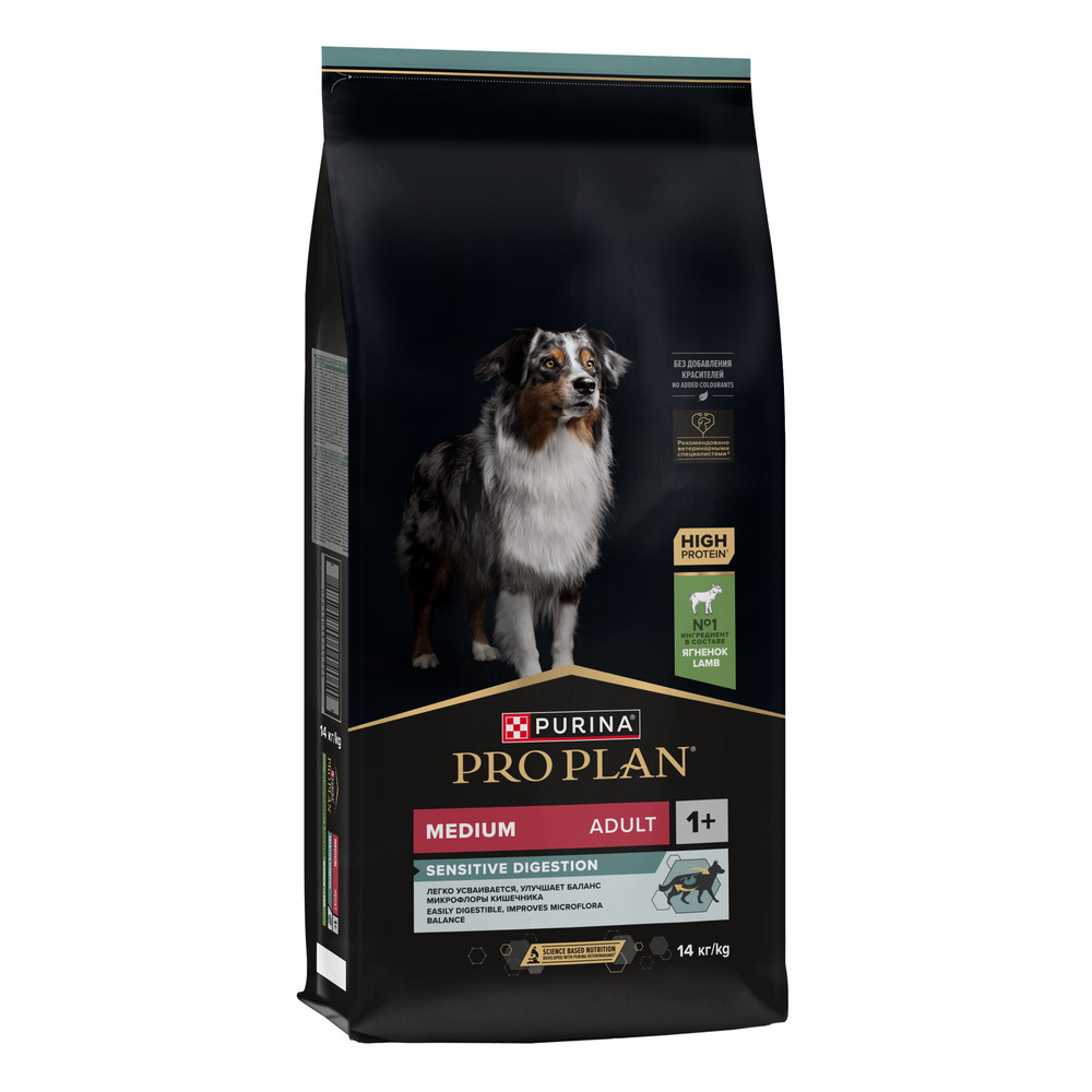 Изучая потребности собак на протяжении многих лет, команда квалифицированных ветеринарных специалистов и диетологов PURINA разработала сухой корм PRO PLAN® Sensitive digestion (для чувствительного пищеварения) — ежедневный рацион с высоким содержанием ягненка для взрослых собак средних пород.