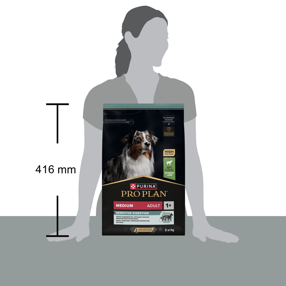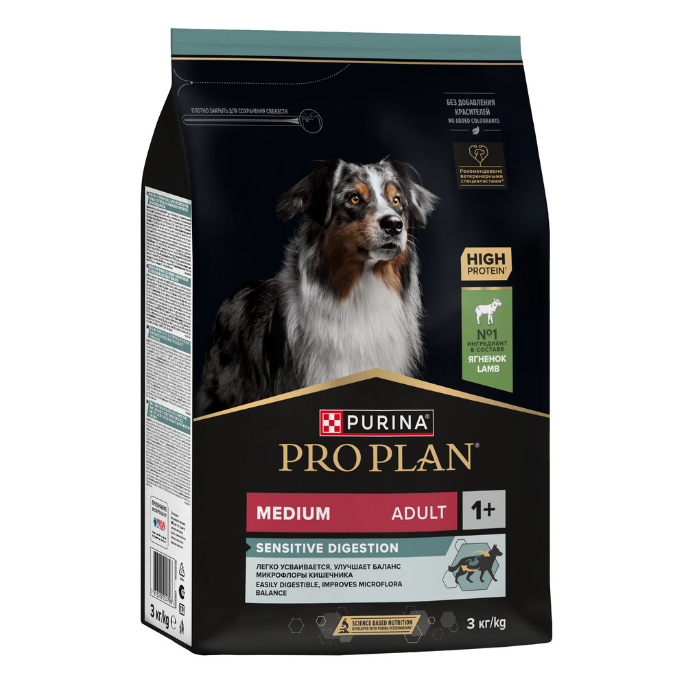 Изучая потребности собак на протяжении многих лет, команда квалифицированных ветеринарных специалистов и диетологов PURINA разработала сухой корм PRO PLAN® Sensitive digestion (для чувствительного пищеварения) — ежедневный рацион с высоким содержанием ягненка для взрослых собак средних пород.