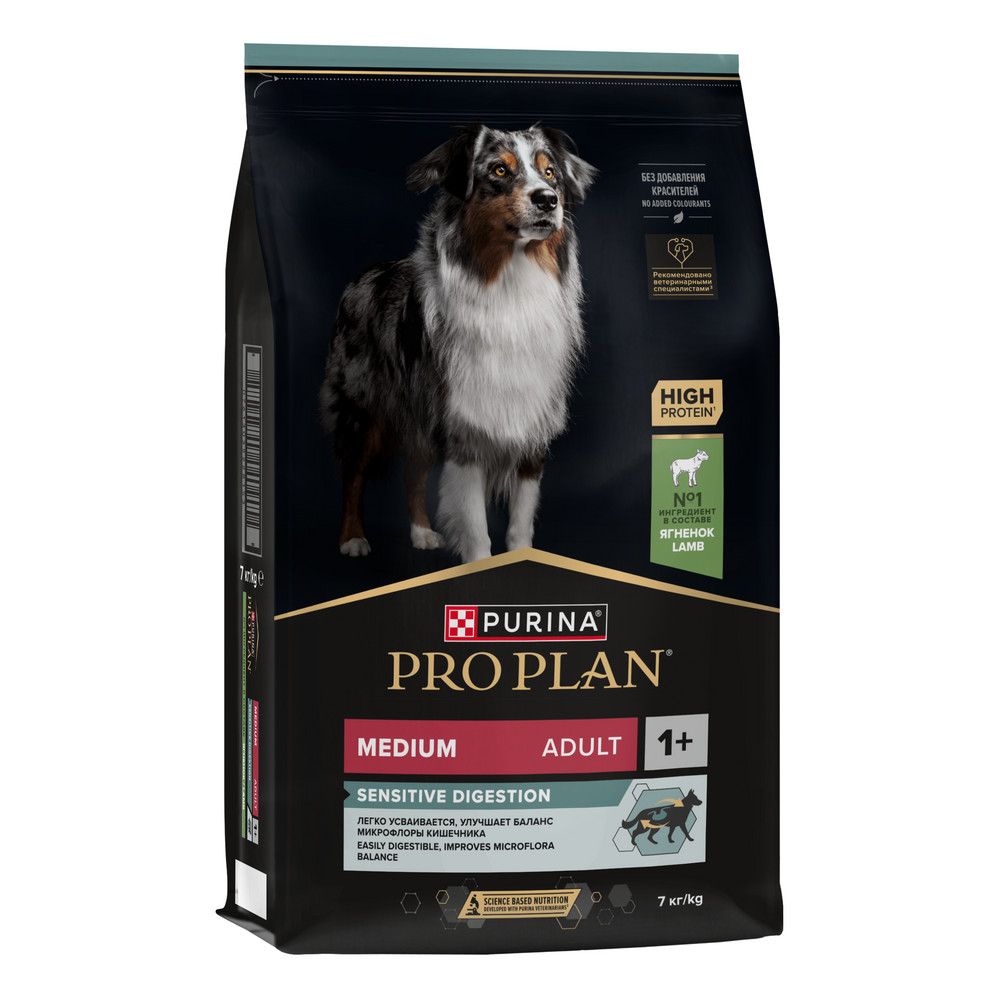 Изучая потребности собак на протяжении многих лет, команда квалифицированных ветеринарных специалистов и диетологов PURINA разработала сухой корм PRO PLAN® Sensitive digestion (для чувствительного пищеварения) — ежедневный рацион с высоким содержанием ягненка для взрослых собак средних пород.