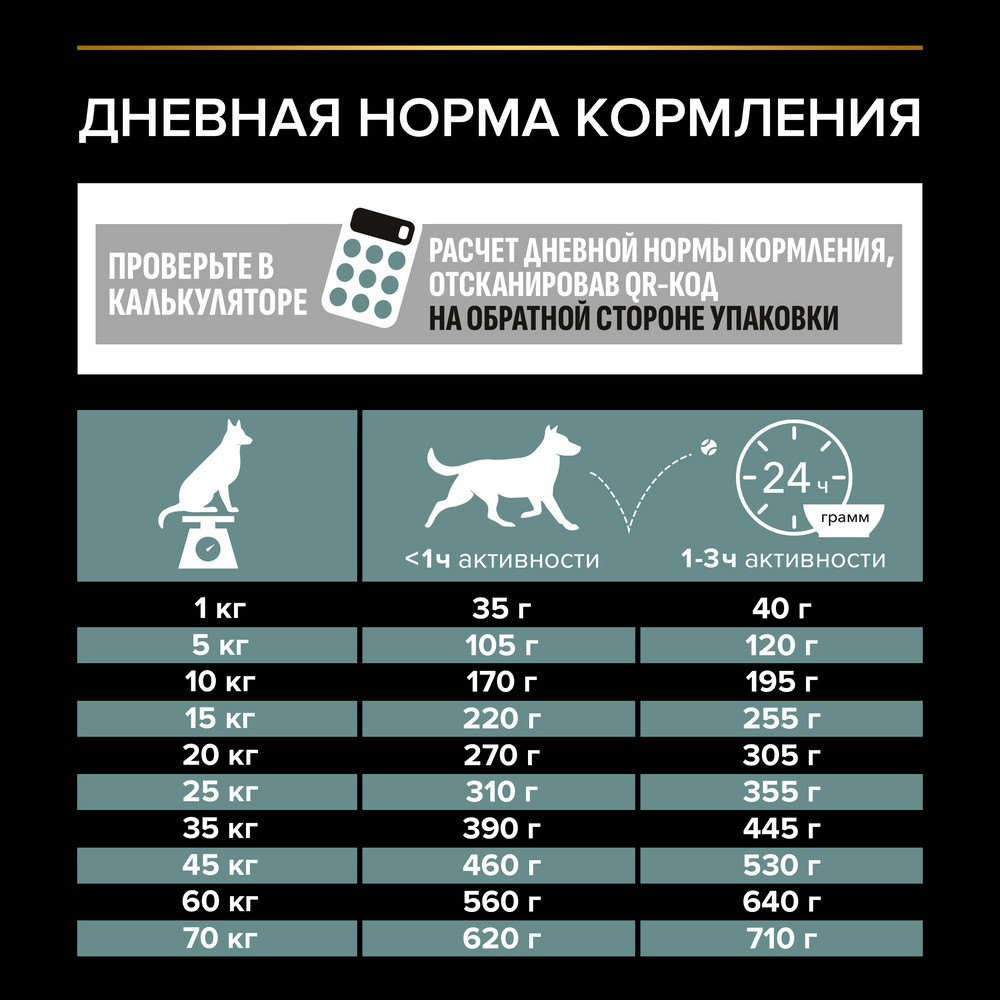 Индивидуальную норму кормления собаки с учетом ее возраста, размера и индивидуальных потребностей вы можете рассчитать в специальном калькуляторе.