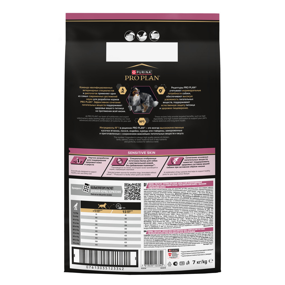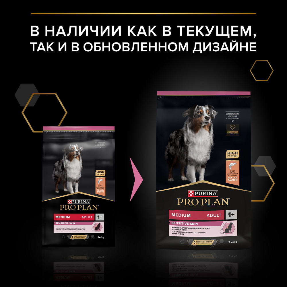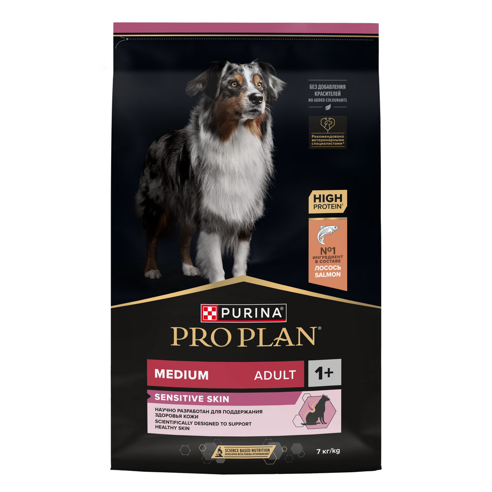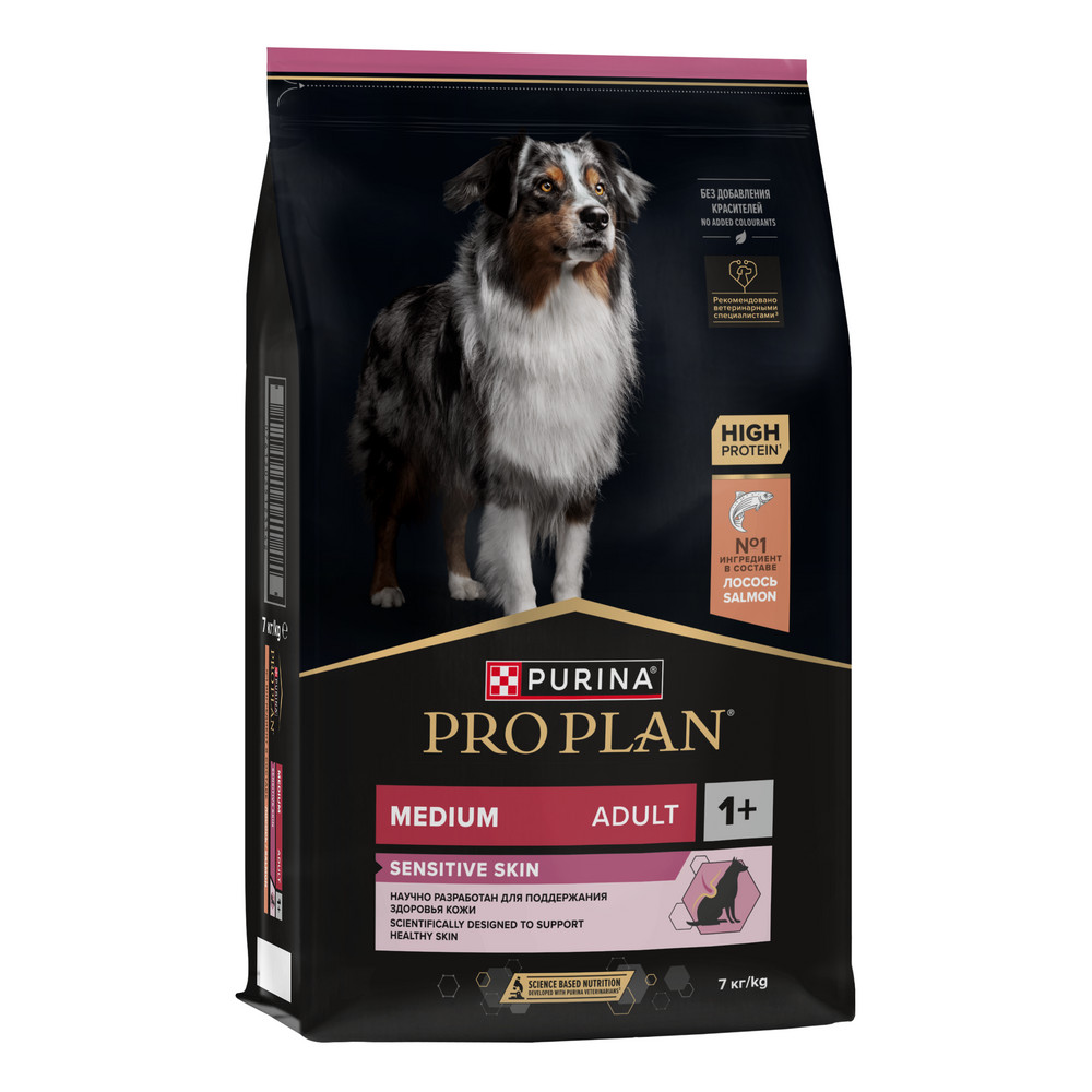 Изучая потребности собак на протяжении многих лет, команда квалифицированных ветеринарных специалистов и диетологов PURINA разработала сухой корм PRO PLAN® Sensitive skin (для чувствительной кожи) — ежедневный рацион с высоким содержанием лосося для взрослых собак средних пород.