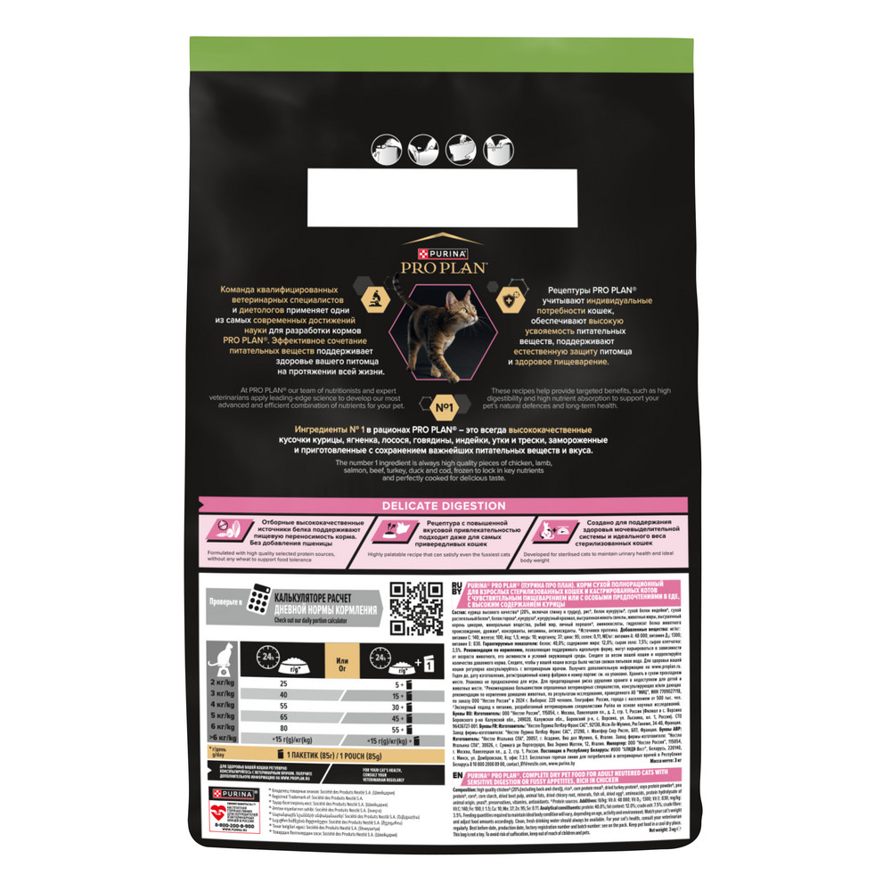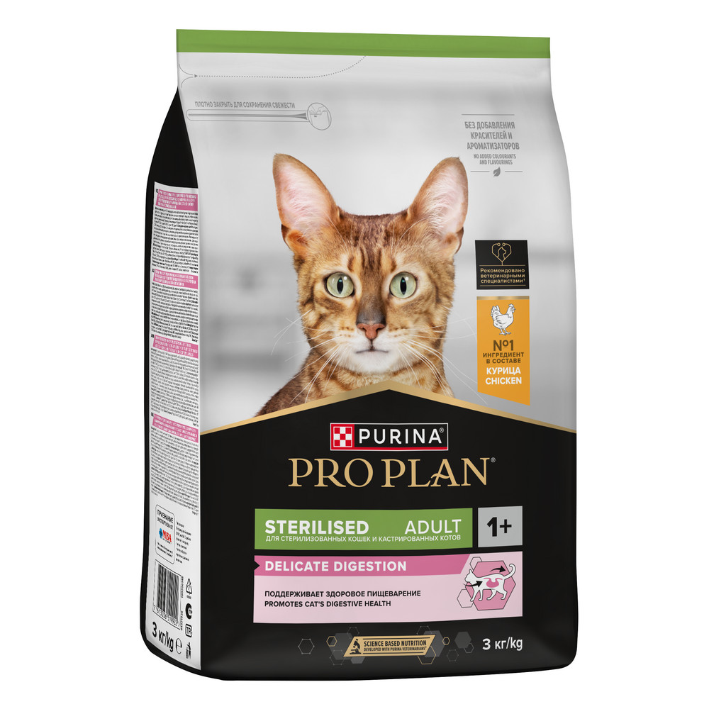 Команда квалифицированных ветеринарных специалистов и диетологов разработала сухой корм для стерилизованных кошек с чувствительным пищеварением или особыми предпочтениями в еде PRO PLAN® Sterilised DELICATE DIGESTION.