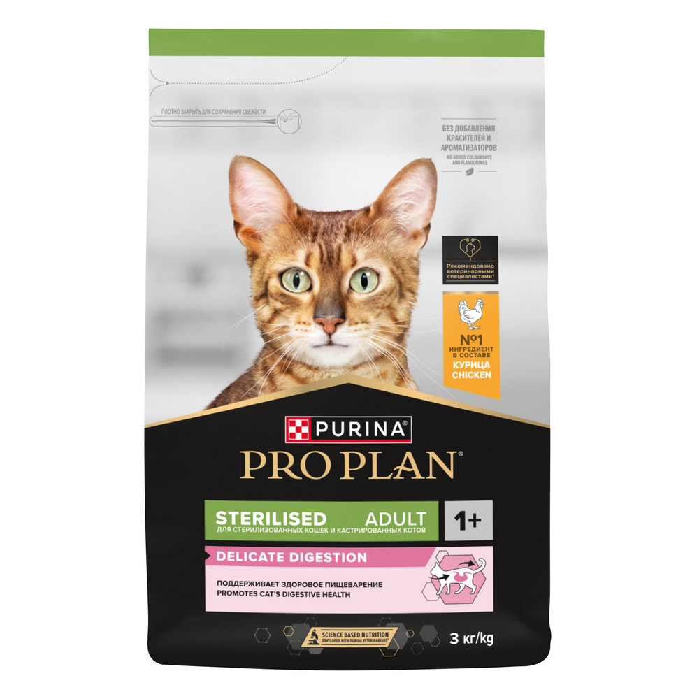 Корм сухой для кошек PRO PLAN® Sterilised DELICATE DIGESTION (Чувствительное пищеварение) — это полюбившийся PRO PLAN® Sterilised OptiDigest с новым названием, но прежним качеством.