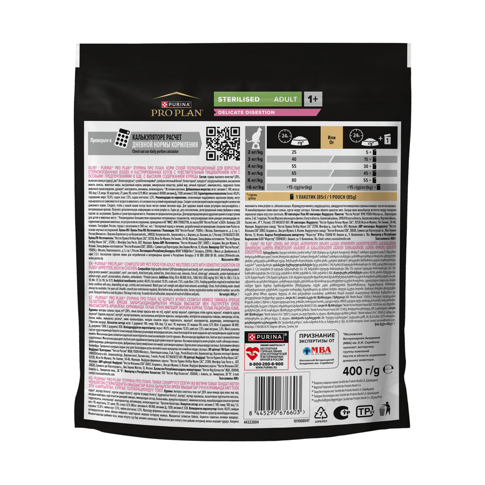 Команда квалифицированных ветеринарных специалистов и диетологов разработала сухой корм для стерилизованных кошек с чувствительным пищеварением или особыми предпочтениями в еде PRO PLAN® Sterilised DELICATE DIGESTION.