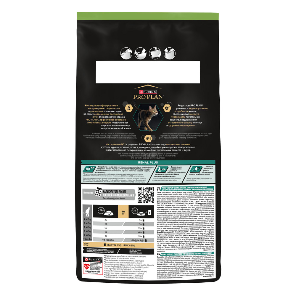 • Помогает защищать зубы от образования налета и зубного камня Корм сухой для кошек PRO PLAN® Sterilised RENAL PLUS (Поддержание здоровья почек) — это полюбившийся PRO PLAN® Sterilised OptiRenal с новым названием, но прежним составом и качеством.