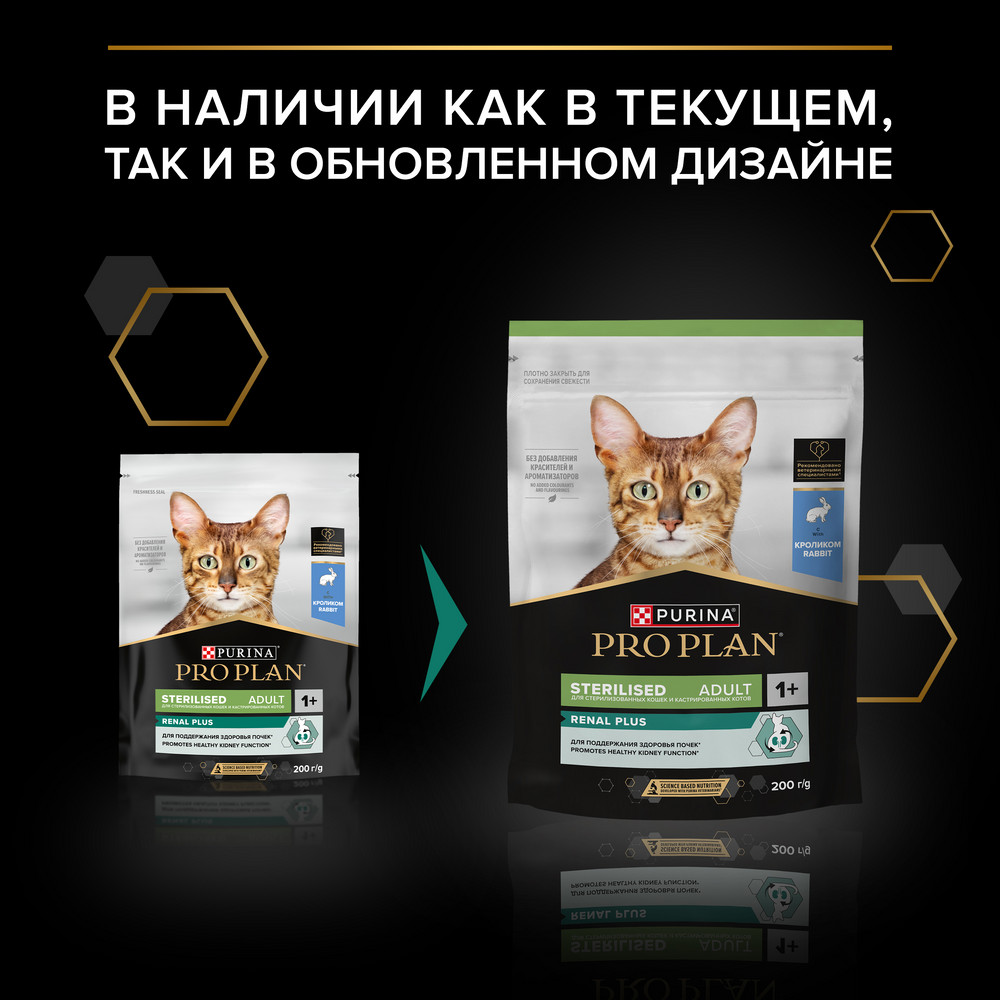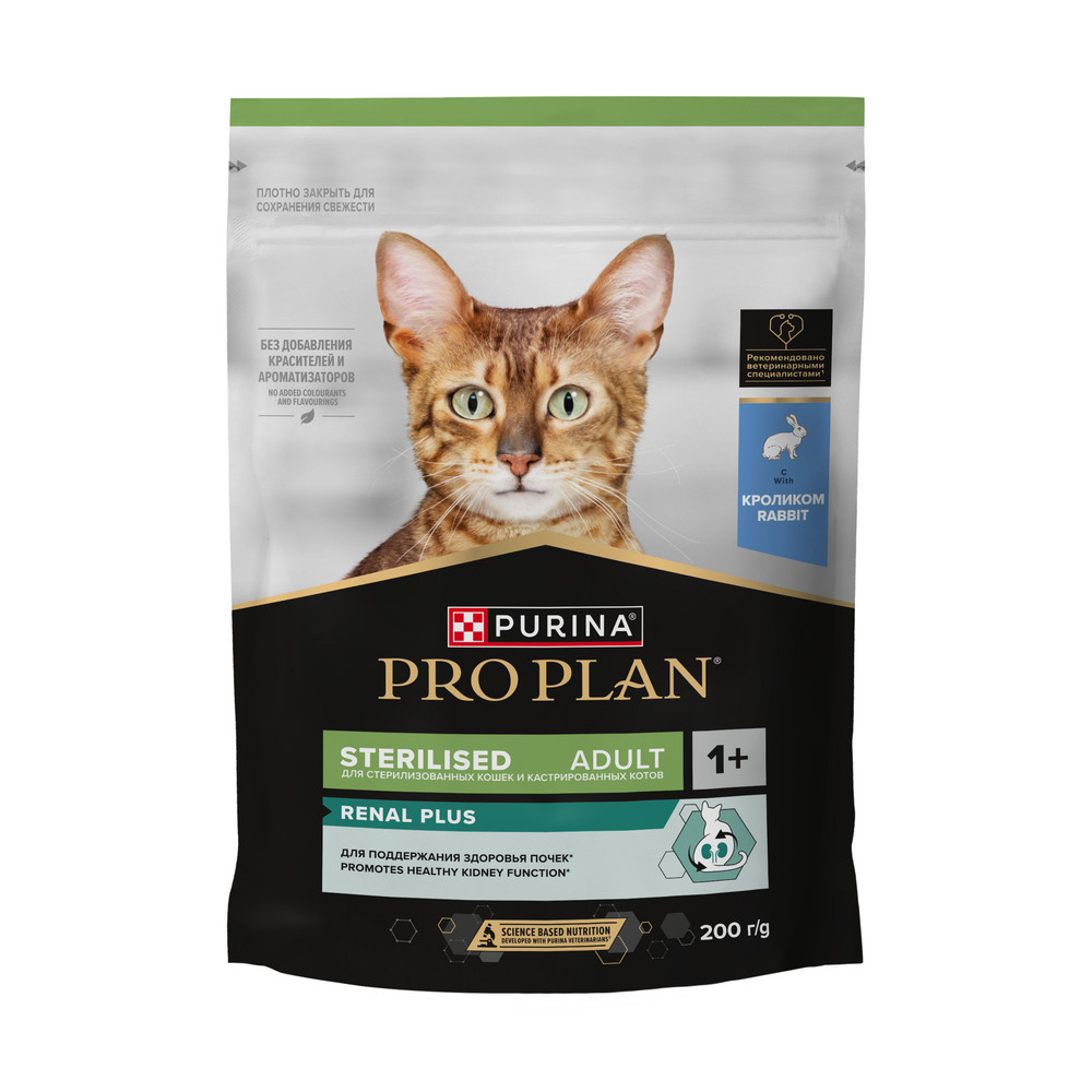 Корм сухой для кошек PRO PLAN® Sterilised RENAL PLUS (Поддержание здоровья почек) — это полюбившийся PRO PLAN® Sterilised OptiRenal с новым названием, но прежним составом и качеством.