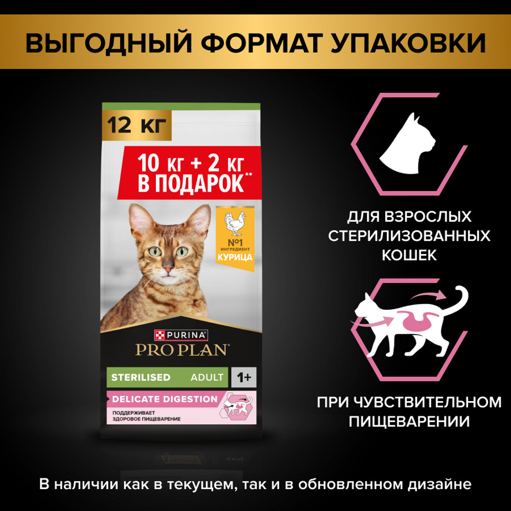 Корм сухой для кошек PRO PLAN® Sterilised Adult DELICATE DIGESTION (Чувствительное пищеварение) — это полюбившийся PRO PLAN® Sterilised OptiDigest с новым названием, но прежним качеством.