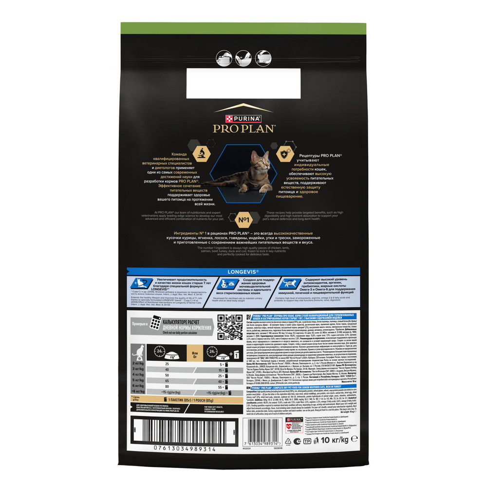 Команда квалифицированных ветеринарных специалистов и диетологов разработала корм для стерилизованных кошек сухой с индейкой серии PRO PLAN® Sterilised LONGEVIS для стерилизованных кошек старше 7 лет.