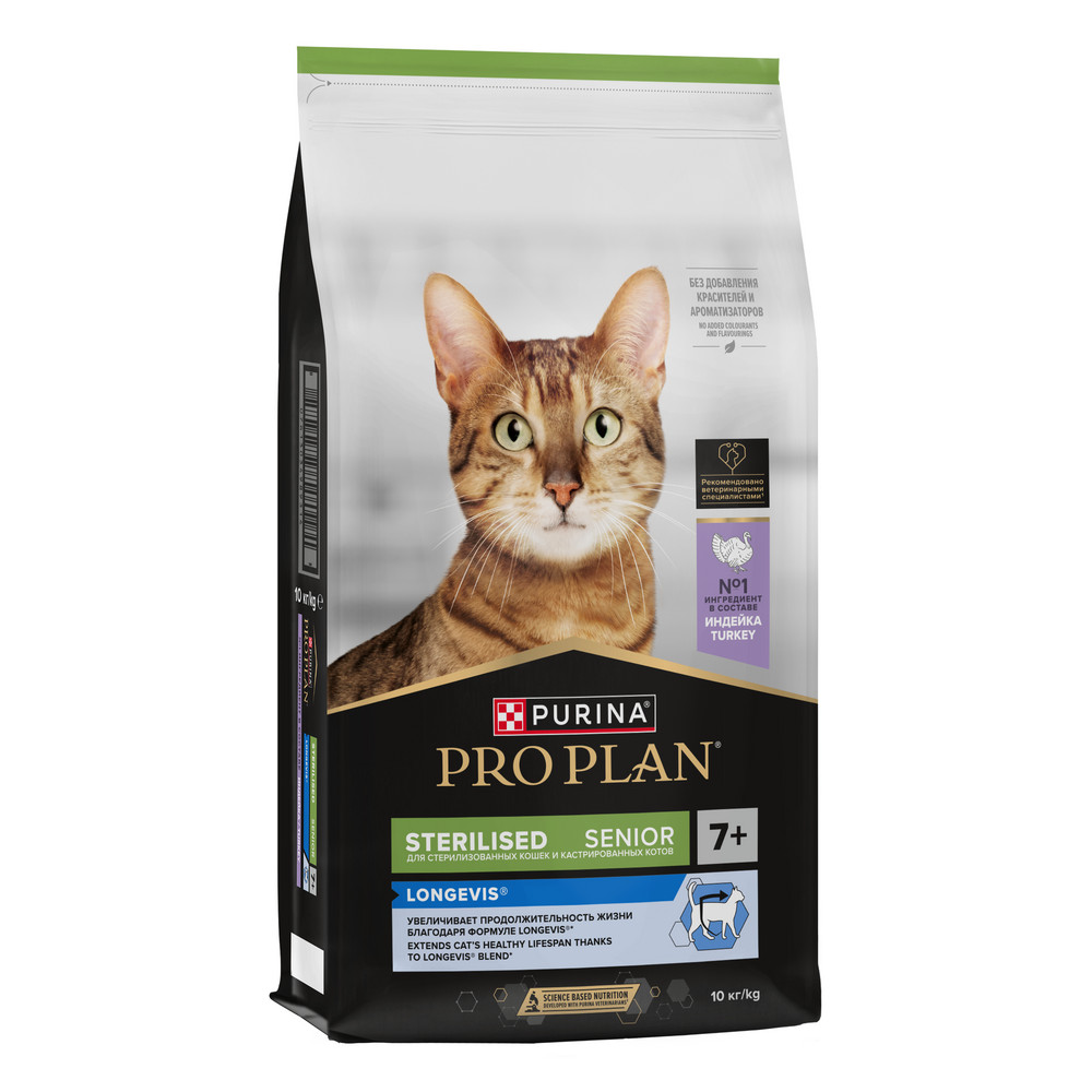 Корм сухой для кошек старше 7 лет PRO PLAN® Sterilised LONGEVIS® (Формула LONGEVIS® для увеличения продолжительности жизни) — это полюбившийся PRO PLAN® STERILISED Senior с прежним составом и качеством .