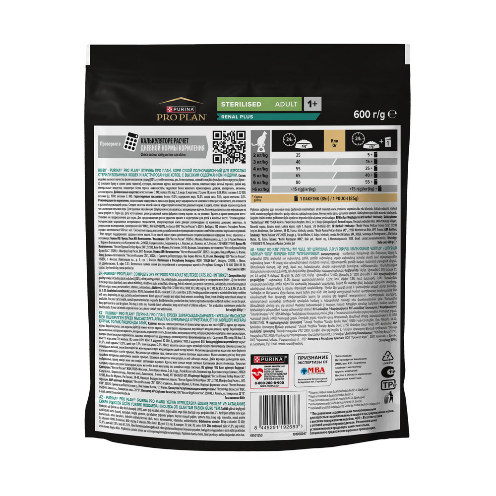 Корм сухой для кошек PRO PLAN® Sterilised Adult RENAL PLUS — это полюбившийся PRO PLAN® Sterilised OptiRenal с новым названием, но с прежним составом и качеством.