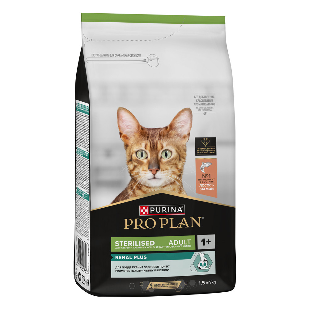 Корм сухой для кошек PRO PLAN® Sterilised RENAL PLUS (Поддержание здоровья почек) — это полюбившийся PRO PLAN® Sterilised OptiRenal с новым названием, но с прежним составом и качеством.