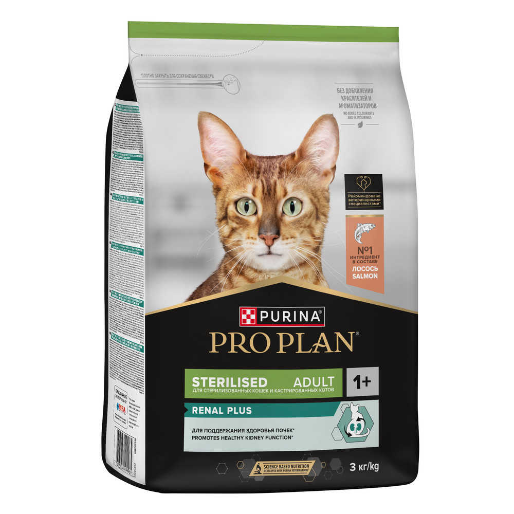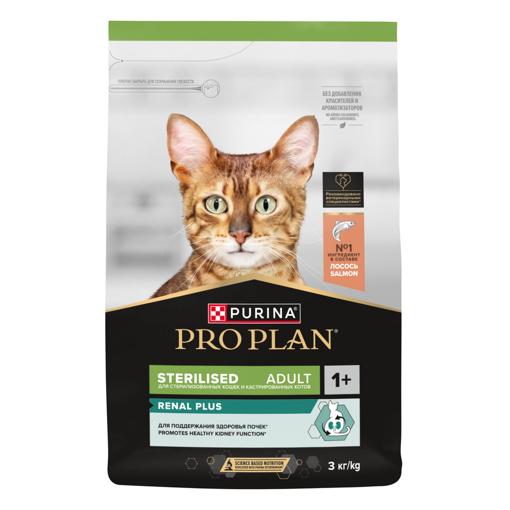 Корм сухой для кошек PRO PLAN® Sterilised RENAL PLUS (Поддержание здоровья почек) — это полюбившийся PRO PLAN® Sterilised OptiRenal с новым названием, но с прежним составом и качеством.