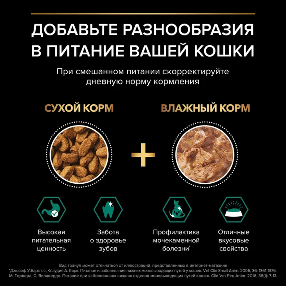 • Сухие корма PRO PLAN включают в себя специальную формулу, которая обеспечивает эффективную работу почек и правильный уровень кислотности мочи