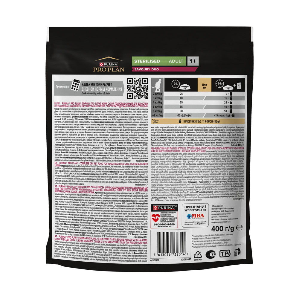 Рассчитайте индивидуальную норму кормления в калькуляторе по QR-коду на оборотной стороне упаковки.
