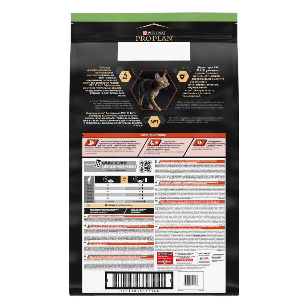 Команда квалифицированных ветеринарных специалистов и диетологов разработала сухой корм для стерилизованных кошек PRO PLAN® Sterilised VITAL FUNCTIONS.