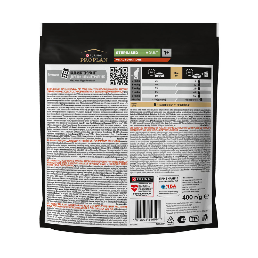 Команда квалифицированных ветеринарных специалистов и диетологов разработала сухой корм для стерилизованных кошек PRO PLAN® Sterilised VITAL FUNCTIONS.