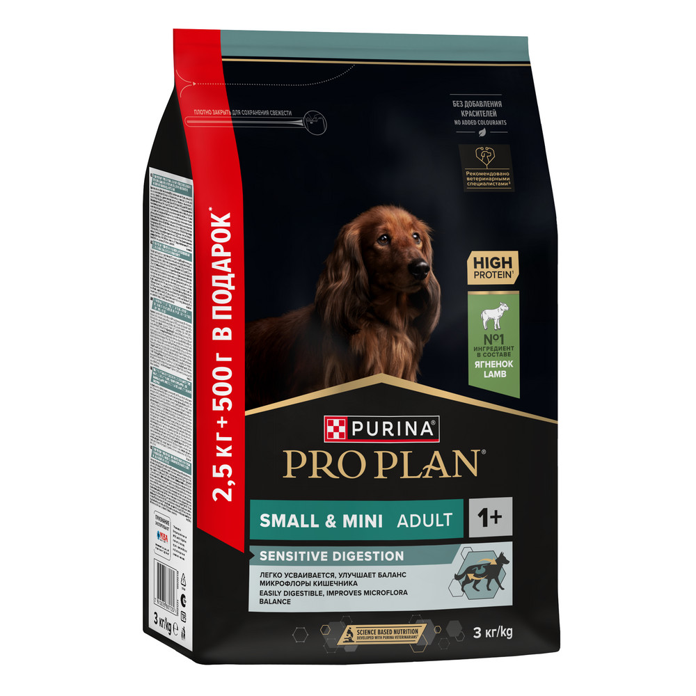 Изучая потребности собак на протяжении многих лет, команда квалифицированных ветеринарных специалистов и диетологов PURINA разработала сухой корм PRO PLAN® Sensitive digestion - ежедневный рацион с высоким содержанием ягненка для взрослых собак мелких и карликовых пород.