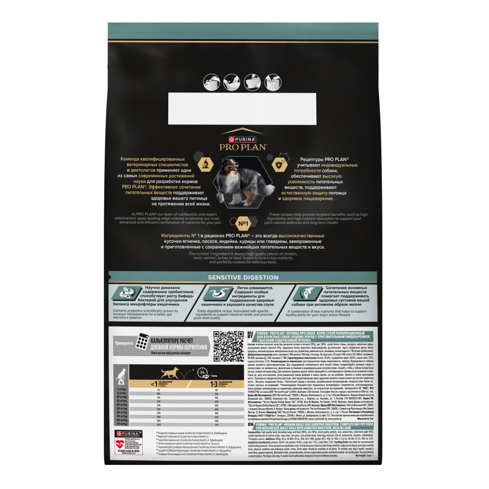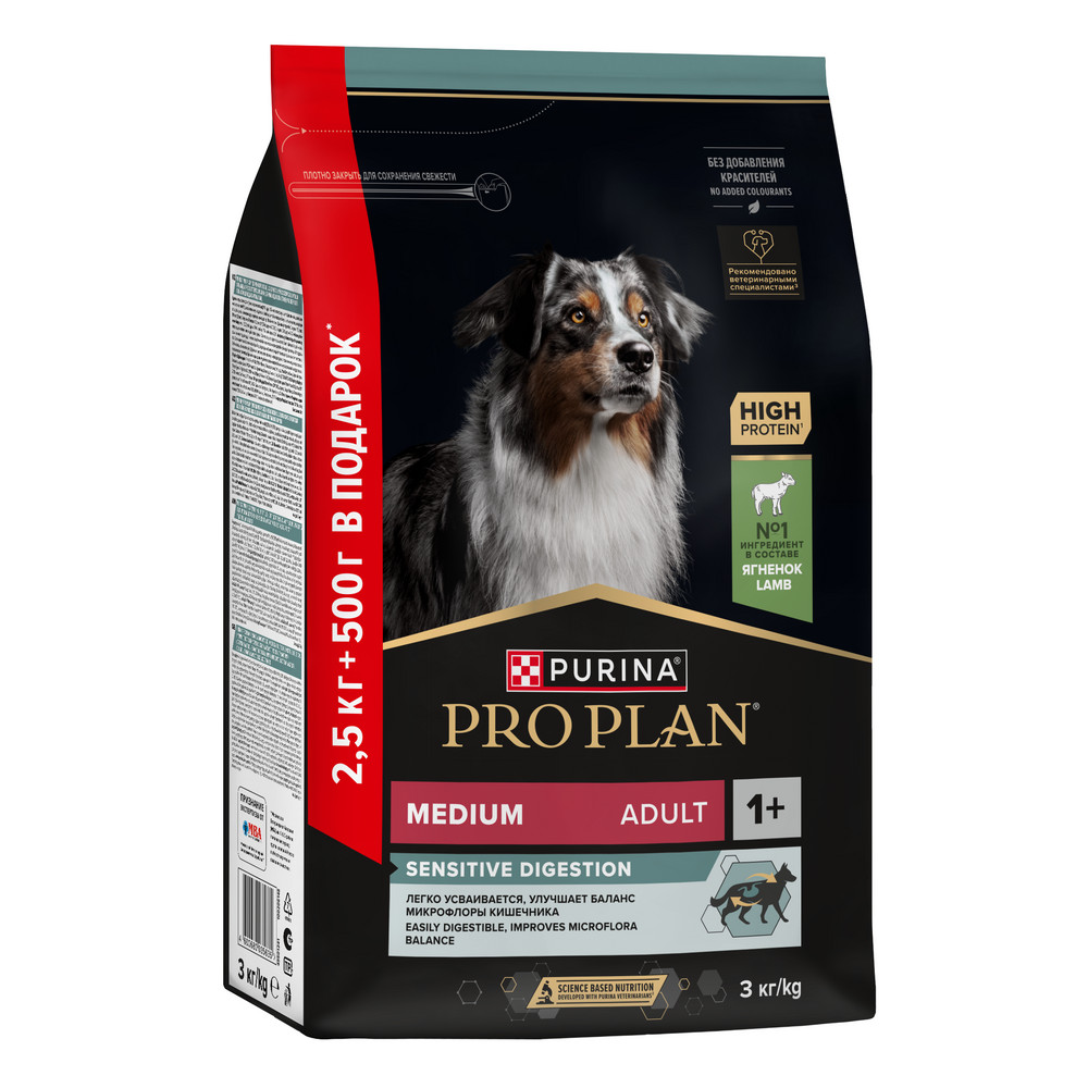 Изучая потребности собак на протяжении многих лет, команда квалифицированных ветеринарных специалистов и диетологов PURINA разработала сухой корм PRO PLAN® Sensitive digestion (для чувствительного пищеварения) — ежедневный рацион с высоким содержанием ягненка для взрослых собак средних пород.