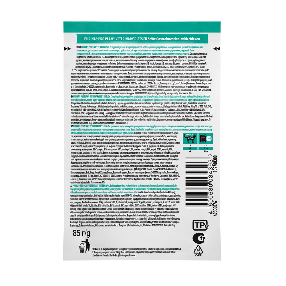 Команда квалифицированных ветеринарных специалистов и диетологов разработала полнорационный диетический корм PRO PLAN® VETERINARY DIETS (Про План Ветеринари Даетс) EN St/Ox Gastrointestinal, для снижения проявлений кишечных расстройств, который подходит как для взрослых кошек, так и для котят.