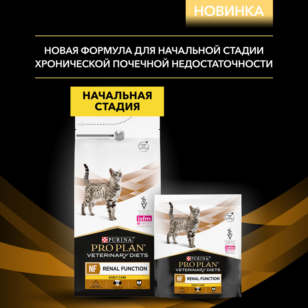 Корм сухой полнорационный диетический PRO PLAN® Veterinary Diets NF Renal Function (Ренал Фанкшен) Early care (Начальная стадия) для взрослых кошек для поддержания функции почек при хронической почечной недостаточности, с умеренным содержанием высококачественного белка и ограниченным содержанием фосфора.