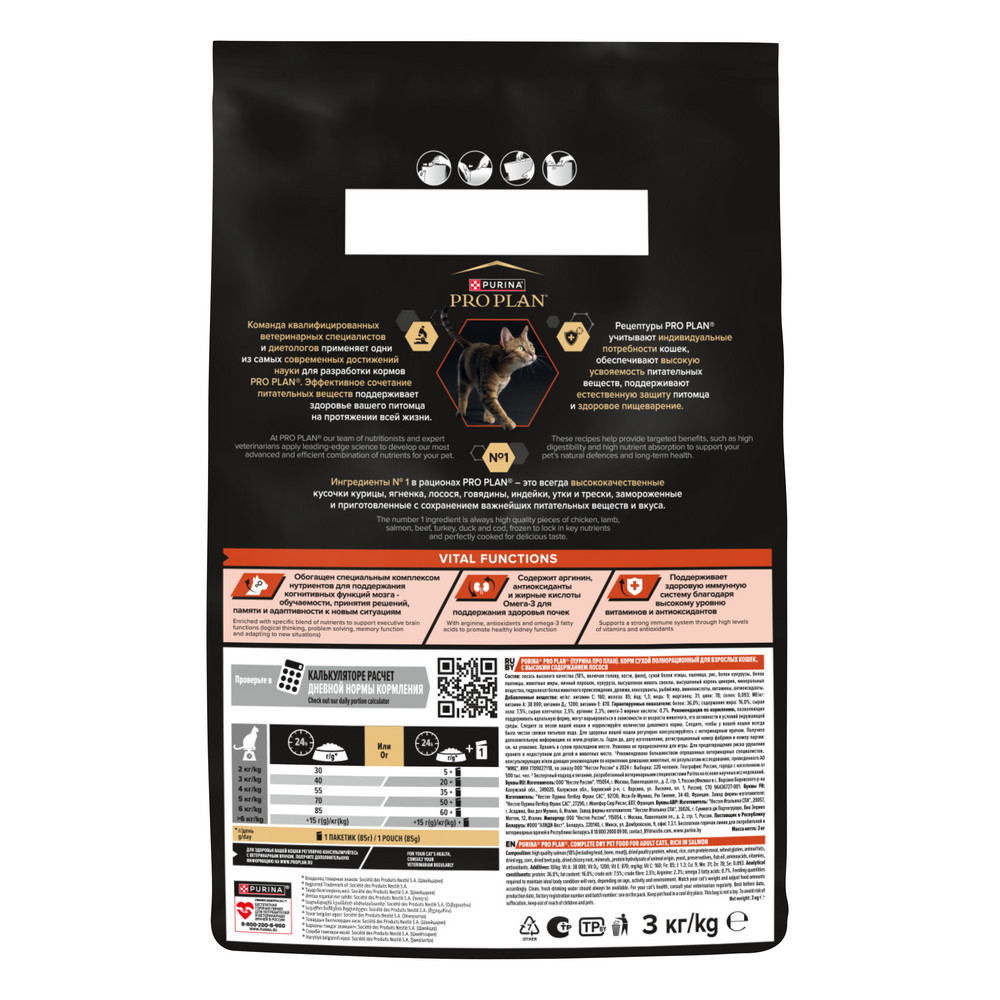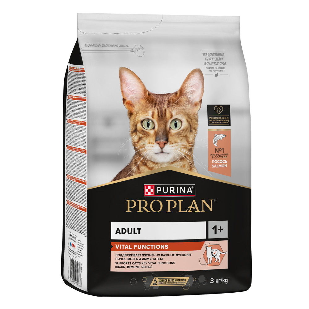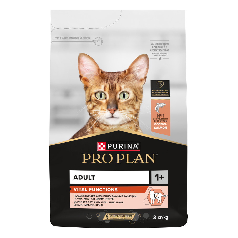 Корм сухой для кошек PRO PLAN® VITAL FUNCTIONS (Жизненно важные функции почек, мозга и иммунитета) — это полюбившийся PRO PLAN® Original OptiSenses с новым названием, но прежним составом и качеством.