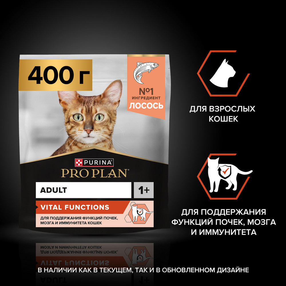 Корм сухой для кошек PRO PLAN® VITAL FUNCTIONS (Жизненно важные функции почек, мозга и иммунитета) — это полюбившийся PRO PLAN® Original OptiSenses с новым названием, но прежним составом и качеством.