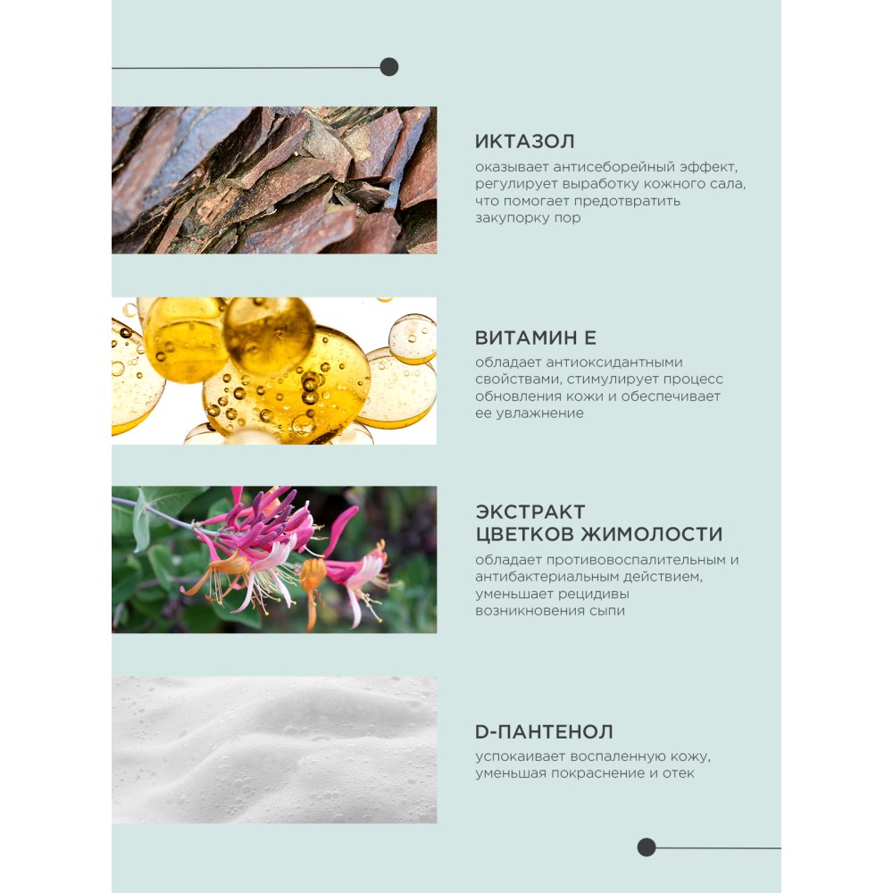 Иктазол (получают из сланцевой нефти) оказывает антисеборейный эффект, регулирует выработку кожного сала, что помогает предотвратить закупорку пор.