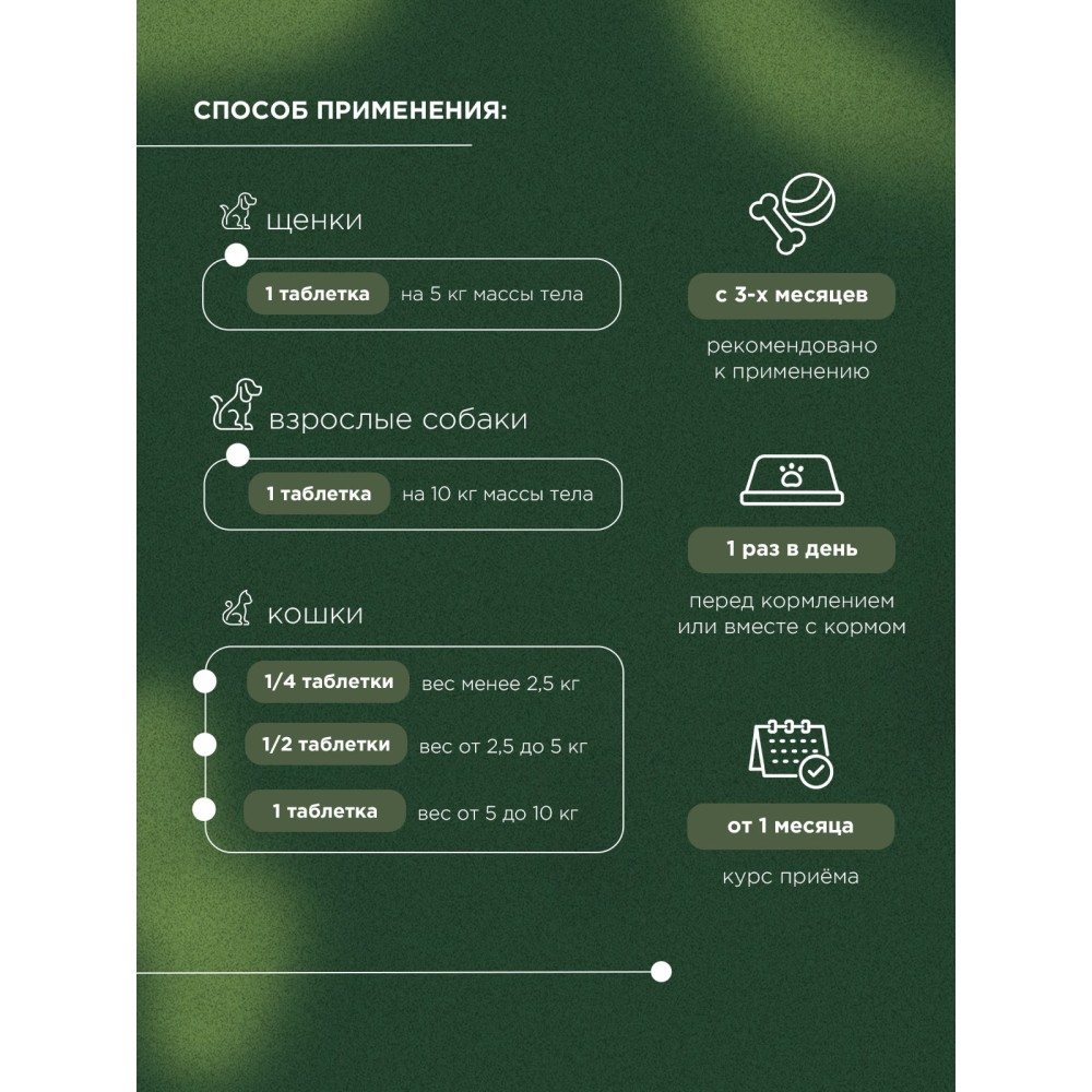 Щенки: 1 таблетка на 5 кг массы тела в день;