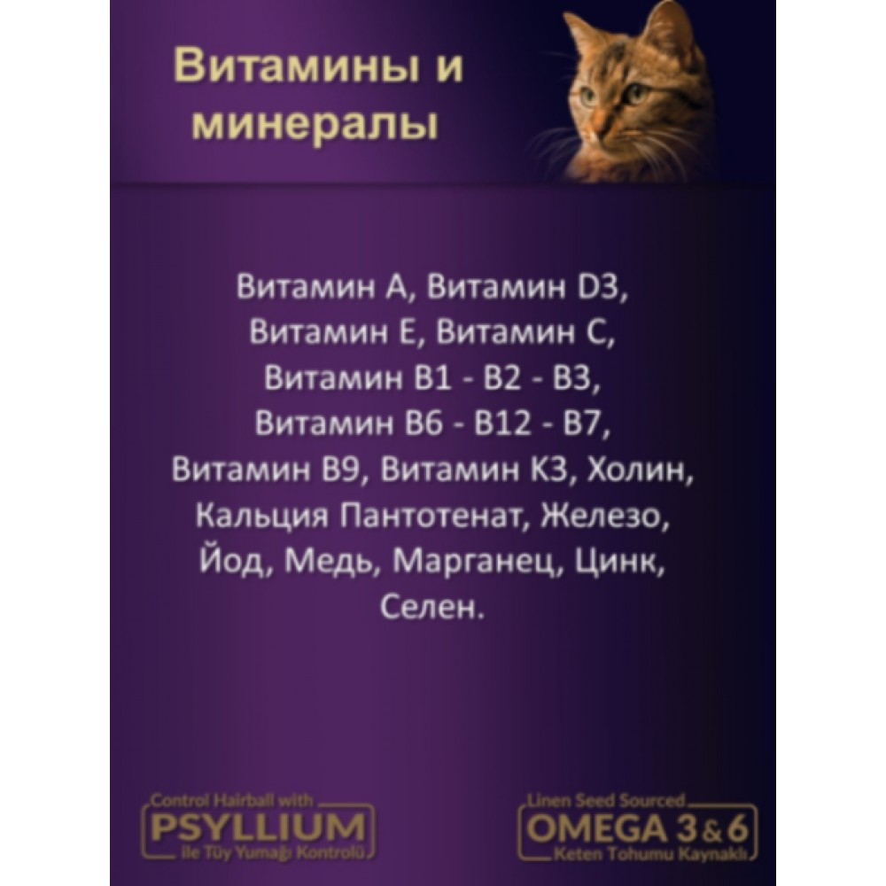 Сырой белок 34%, Содержание жира 22%, Сырая зола 8%, Сырая целлюлоза(клетчатка) 3%