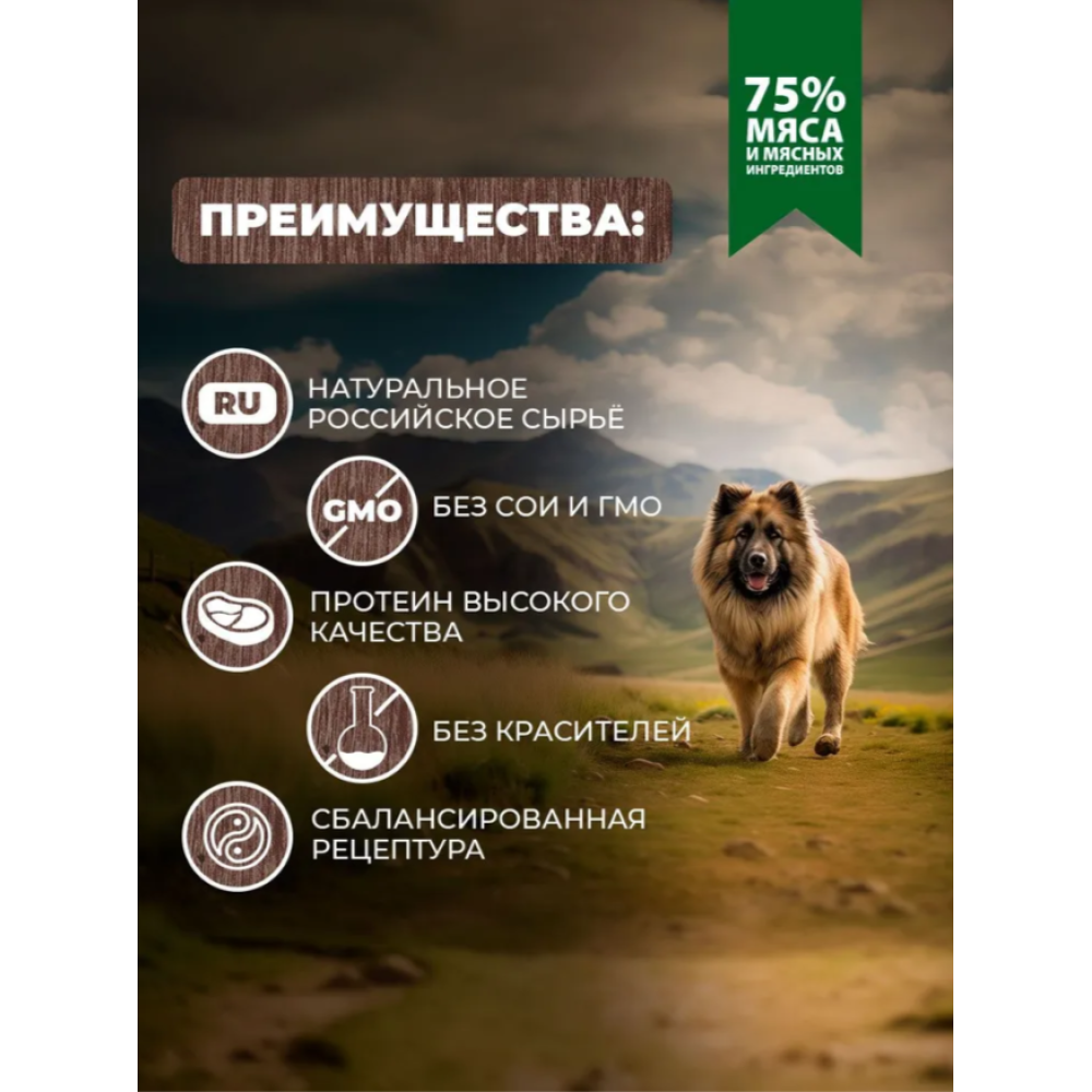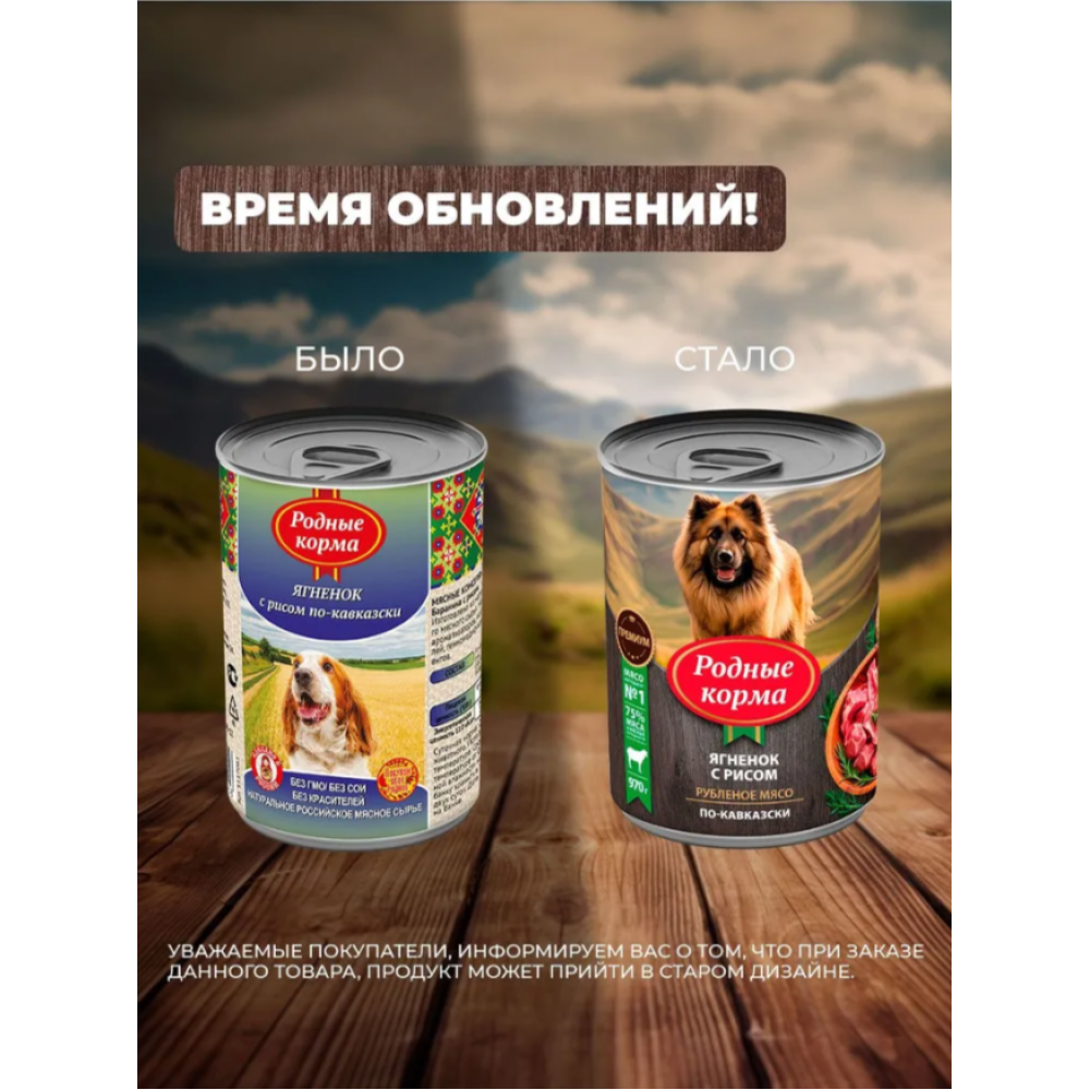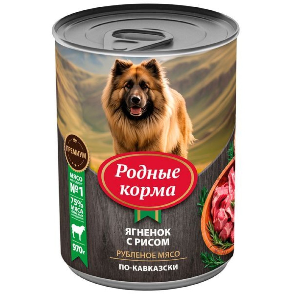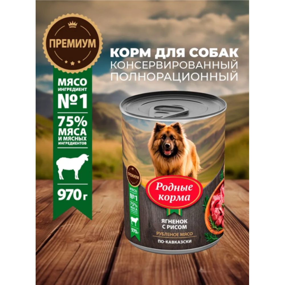 Полнорационный консервированный корм для собак от бренда Родные корма – это 75% мяса и мясных ингредиентов в составе!!