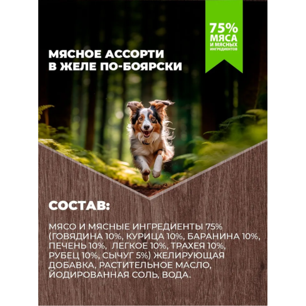 Натуральный состав влажного корма для собак способствует укреплению иммунитета, здоровью кожи и шерсти, а также поддержанию работы пищеварительной системы.