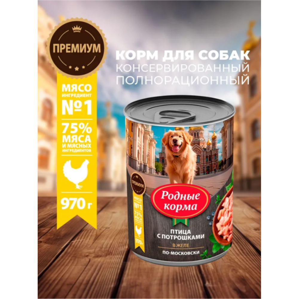 Полнорационный консервированный корм для собак от бренда Родные корма – это 75% мяса и мясных ингредиентов в составе!!