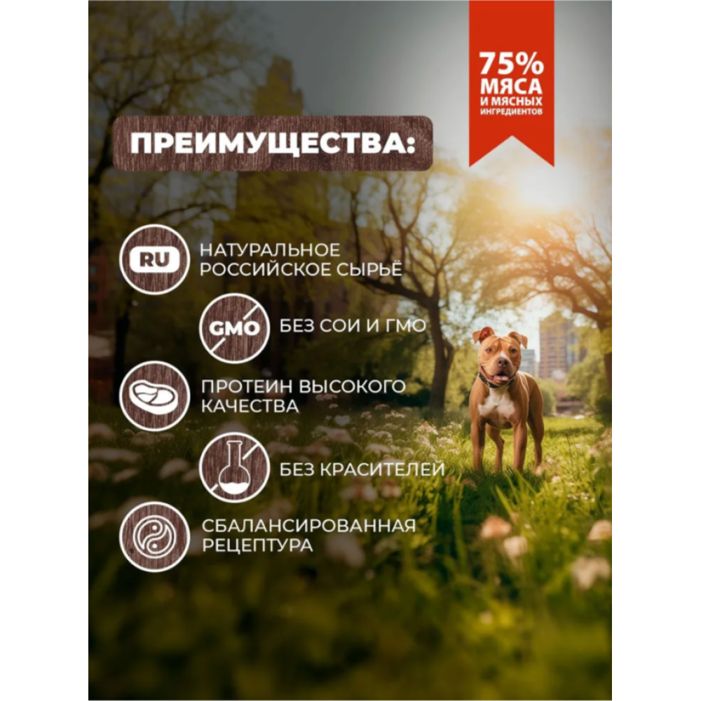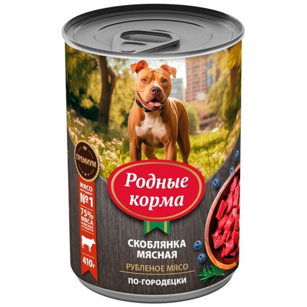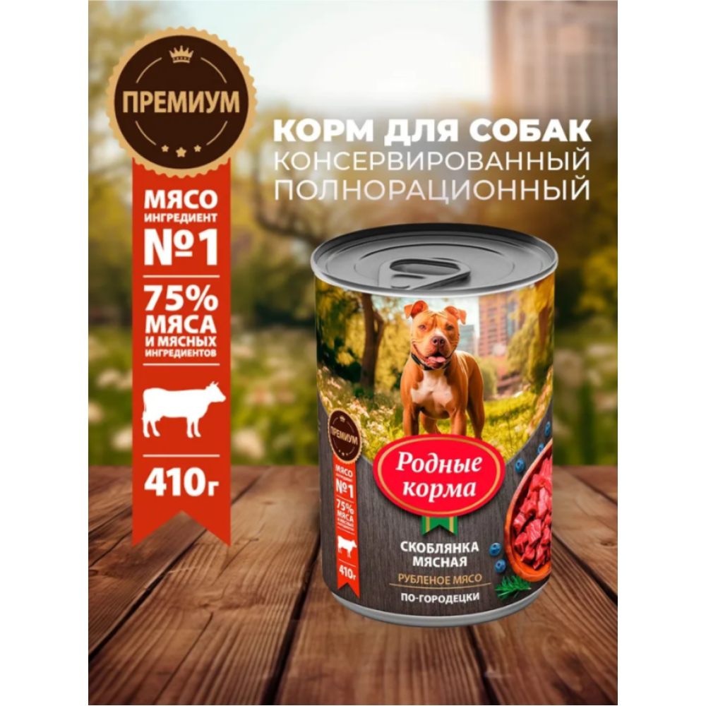 Полнорационный консервированный корм для собак от бренда Родные корма – это 75% мяса и мясных ингредиентов в составе!!